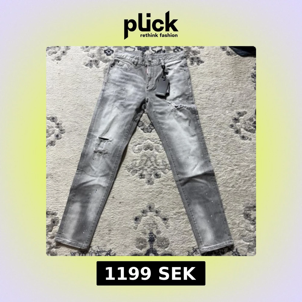 Snygga grå skinny jeans från Dsquared2 med slitningar och färgstänk för en cool, edgy vibe. Klassisk femficksmodell med logotyp vid fickan och detaljerade sömmar. Perfekta för dig som gillar streetstyle och vill sticka ut.
