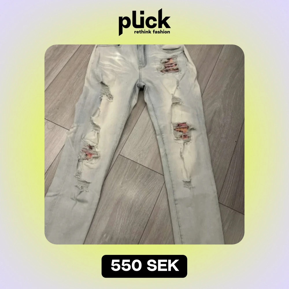 Säljer ett par amiri jeans i storlek 32, jeansen har inget fel och är i bra skick säljer dem pågrund av att det är för små på min son