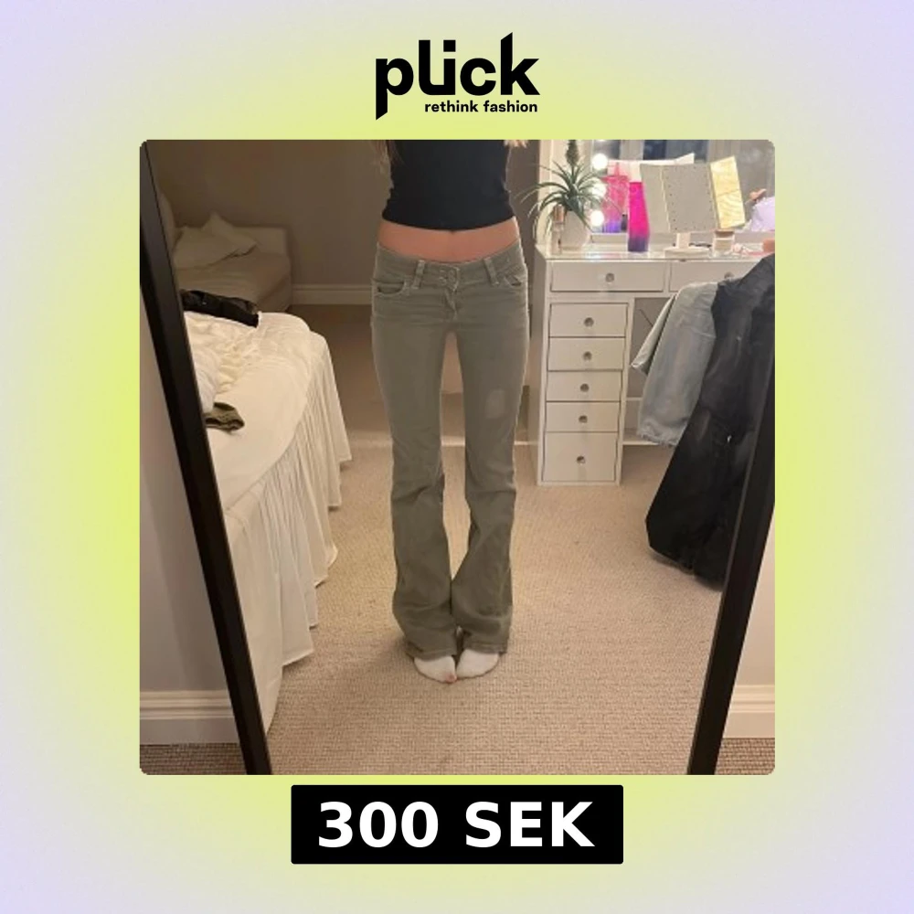 Ett par gröna Nelly byxor som tyvĂ€rr har fĂ„tt en flĂ€ck pĂ„ en svenner som inte gĂ„r bort annars var dem i helt nytt skickđ