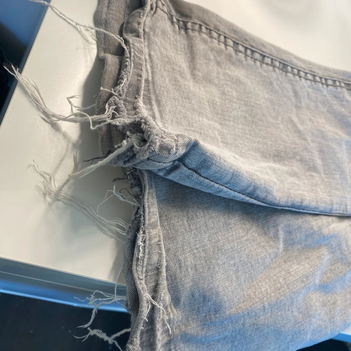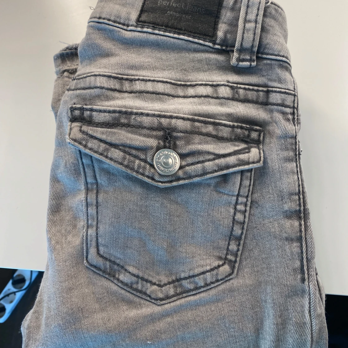 Snygga gråa lågmidjade jeans från Gina Tricot. Dom är i storlek 32 och passar mig perfekt och jag är 160cm lång 🤍 jag har sprättat upp dom där nere (kolla sista). Skriv för frågor och jag är öppen för prisdiskutioner 💋