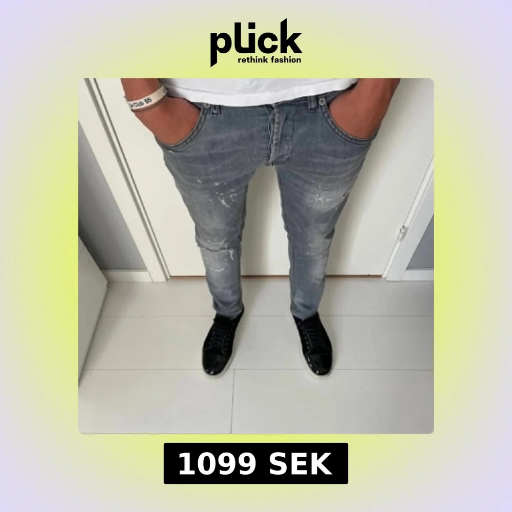 Snygga grå skinny jeans från dondup med coola slitningar och färgstänk för en trendig look. Jeansen har klassisk femficksdesign och smal passform som sitter tajt längs benen. Perfekta för dig som gillar streetstyle och vill sticka ut lite extra.