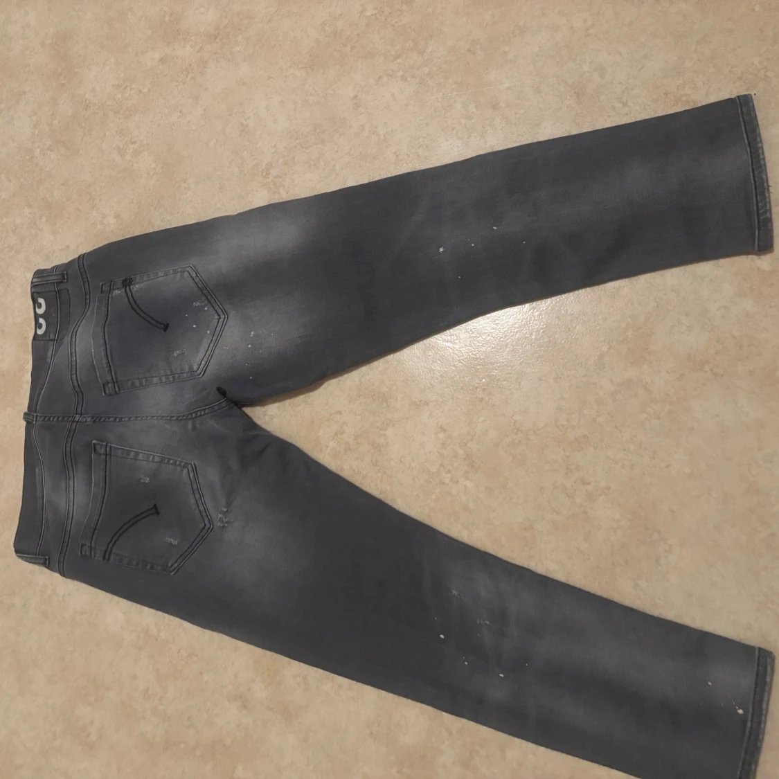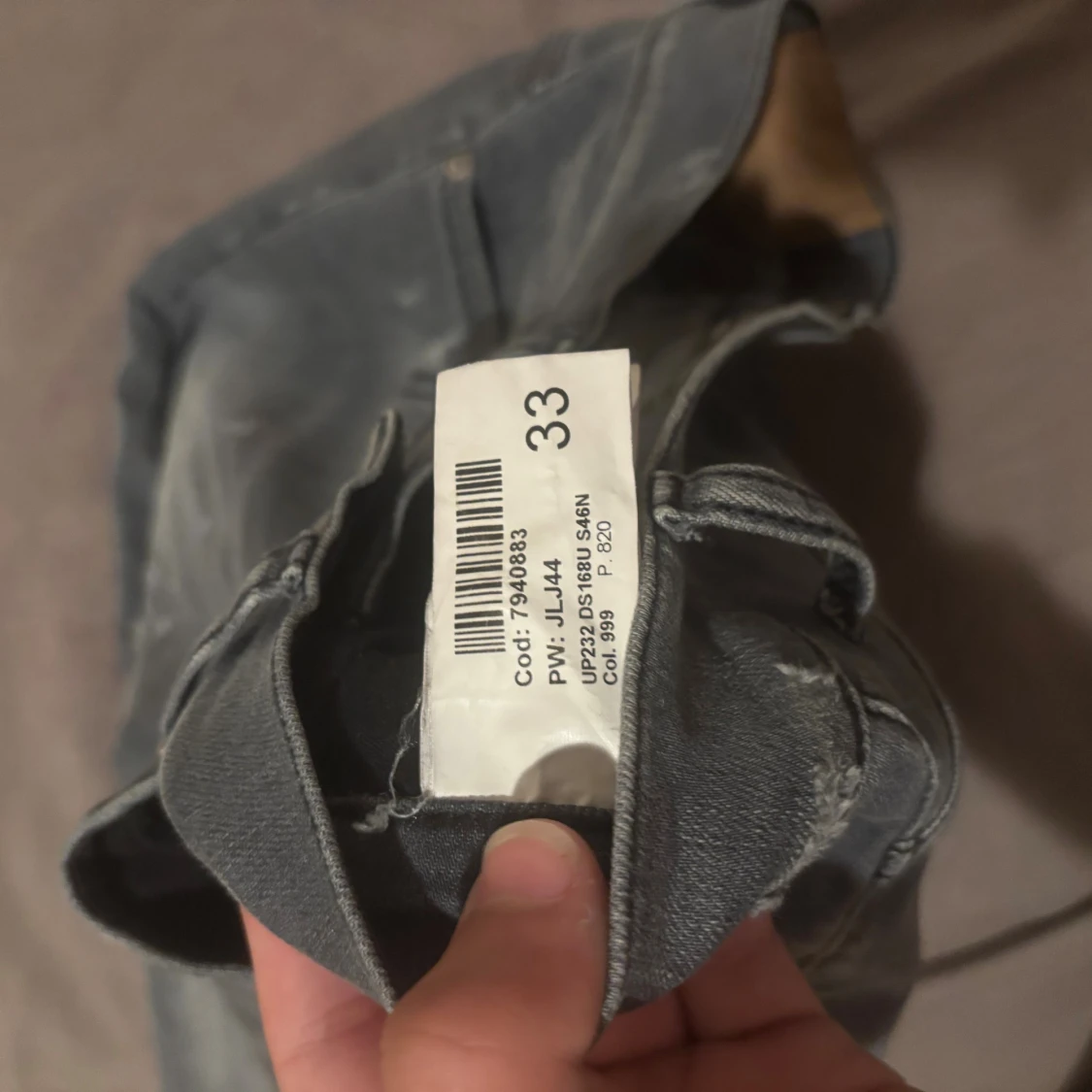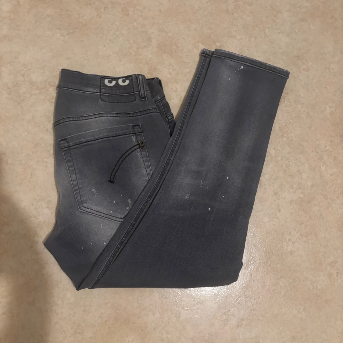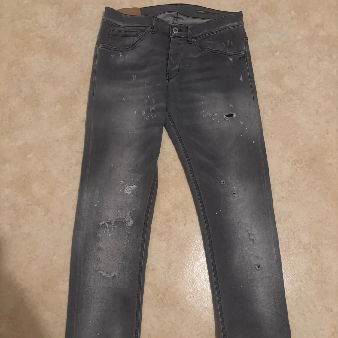 Säljer ett par grå jeans med slitningar och hål för en riktigt edgy look. Jeansen har smal passform och klassisk femficksdesign. Snyggt tvättade detaljer och coola slitningar framtill ger en streetkänsla. Perfekta för dig som gillar en rå och avslappnad stil.