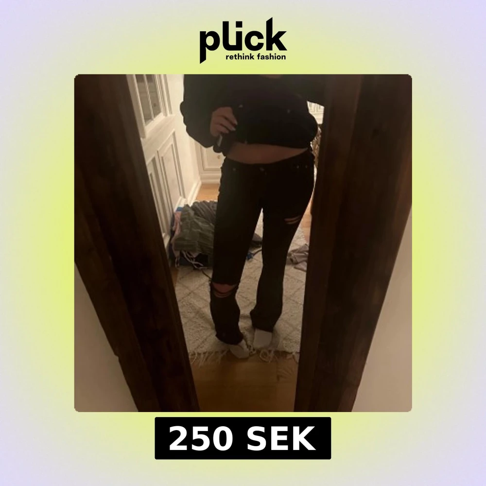Snygga svarta jeans med slitningar på knäna. Jag är 167 som referens❣️