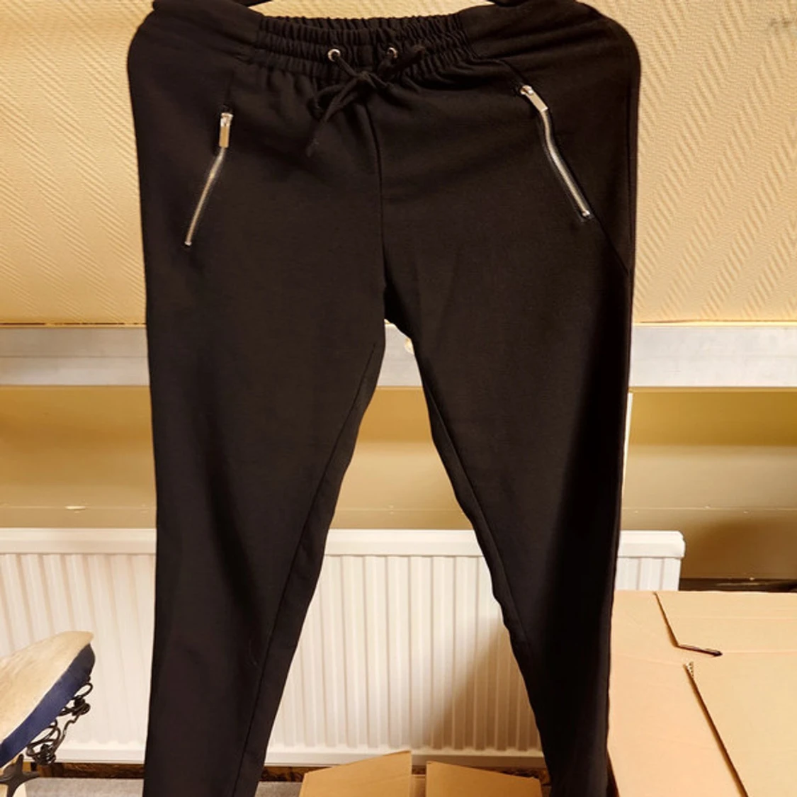 Svarta mjukisbyxor från Amisu med elastisk midja och snörning. Byxorna har två fickor med dragkedja framtill och muddar vid bensluten. Perfekta för chill eller häng med kompisar. Snygg och enkel design som funkar till det mesta.