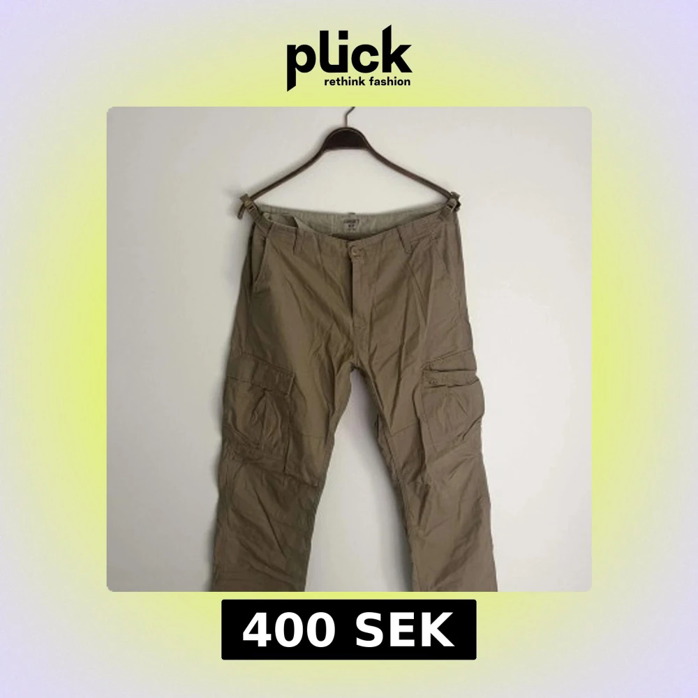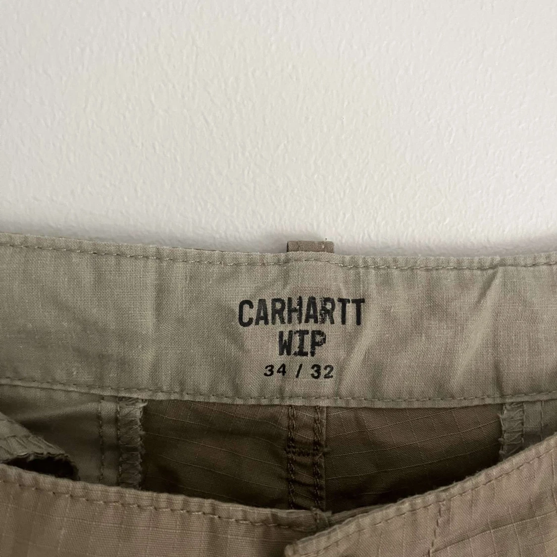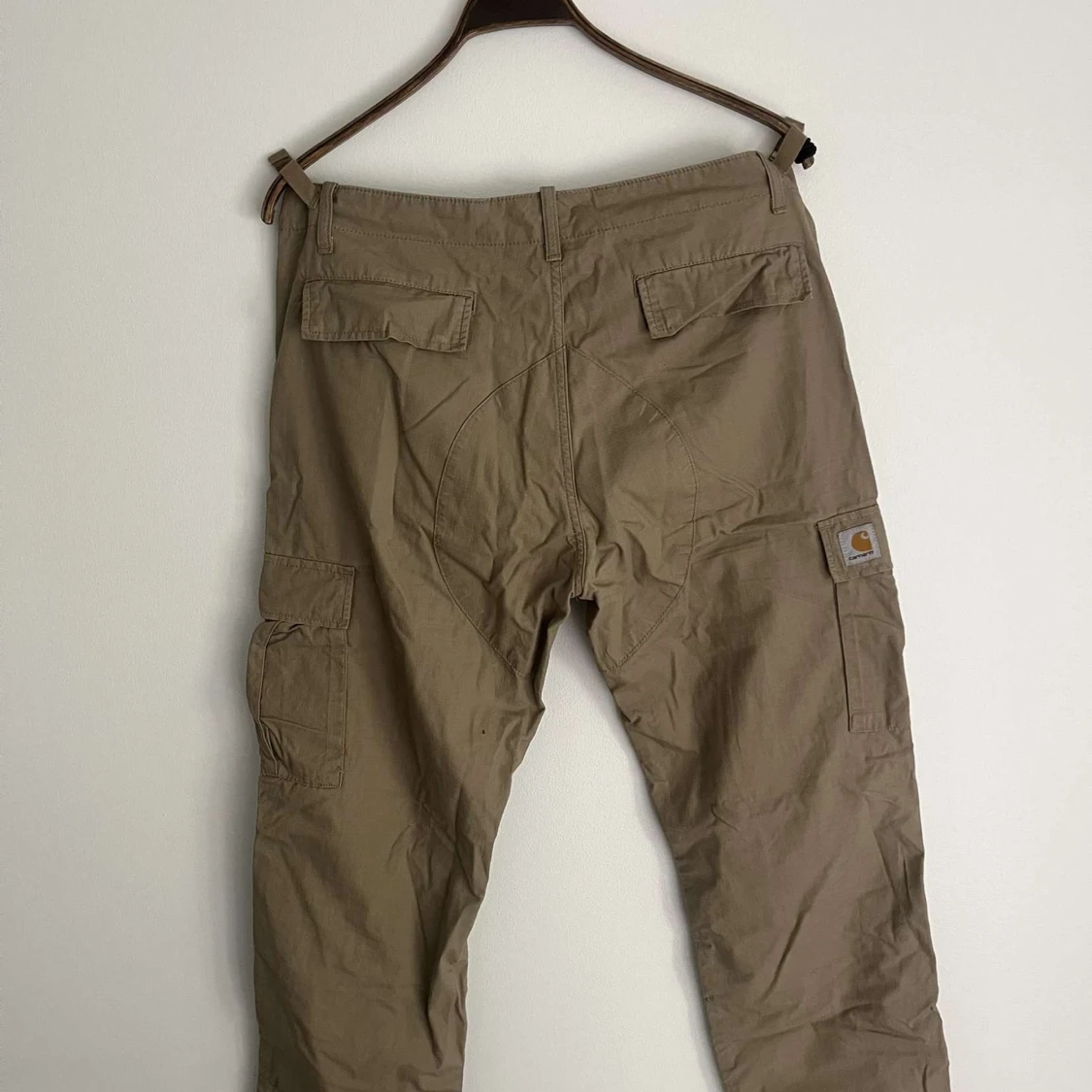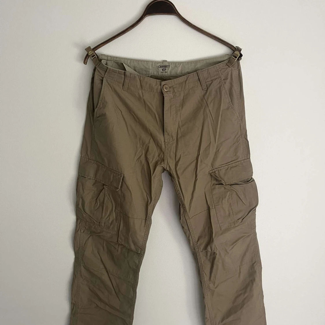 Säljer ett par beige cargopants från Carhartt WIP med flera praktiska fickor på sidorna och bak. Byxorna har rak passform och är gjorda i slitstark bomull. Perfekt för dig som gillar streetwear och funktionella detaljer. nyskick, samt nypris 1199kr.