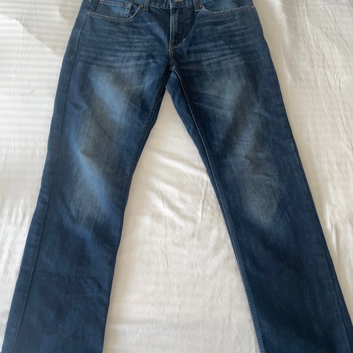 Säljer ett par klassiska blå jeans från C&A i modellen The Straight. Jeansen har raka ben, fem fickor och snygga slitningar framtill. Perfekt passform med normal midja och cool tvättad look. Materialet är tåligt denim som håller länge.