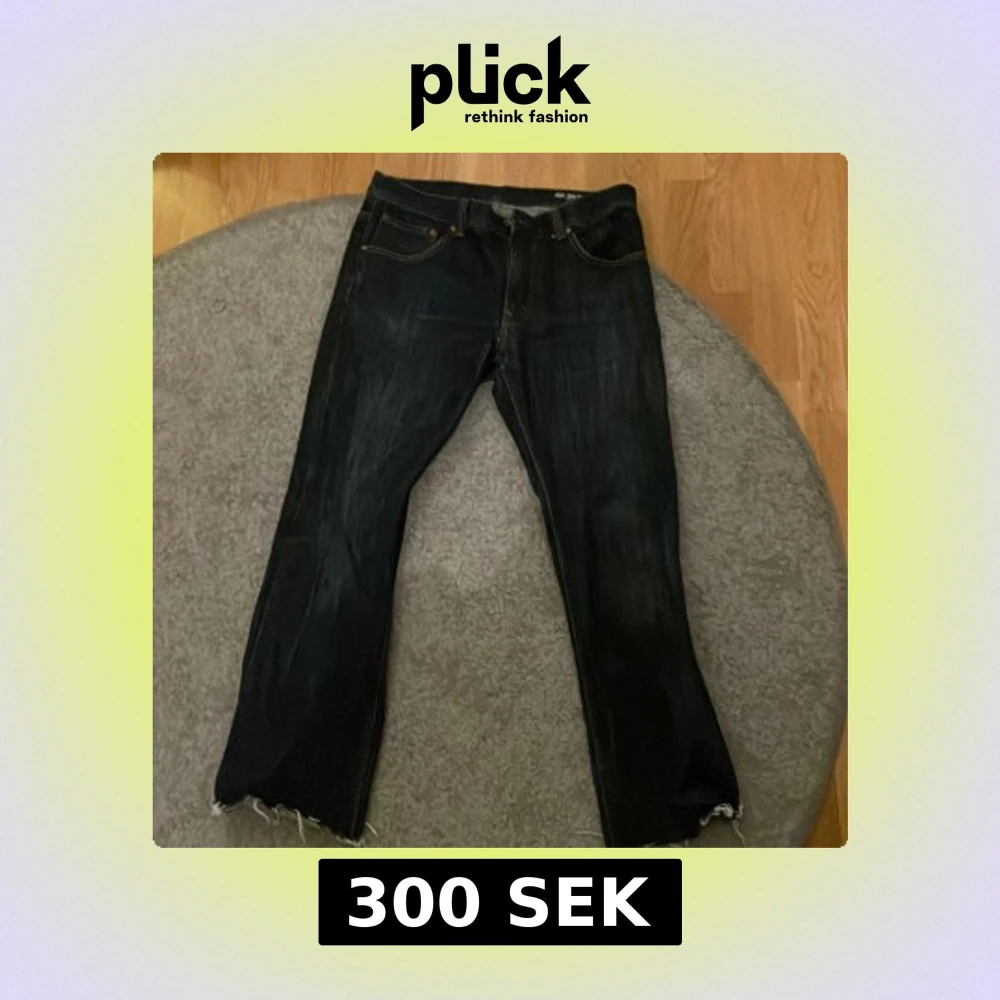 Säljer ett par mörkblå jeans från Crocker med klassisk design måtten på jensen är, 43cm midja 71cm innerbenslängd 25cm höft