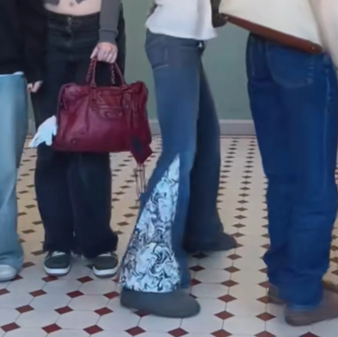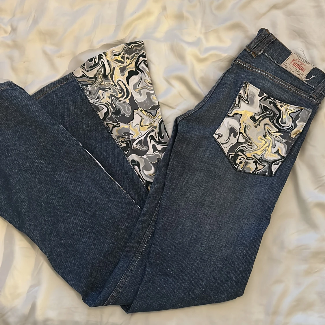 Supersnygga low rise flared jeans med egentillverkade detaljerđ