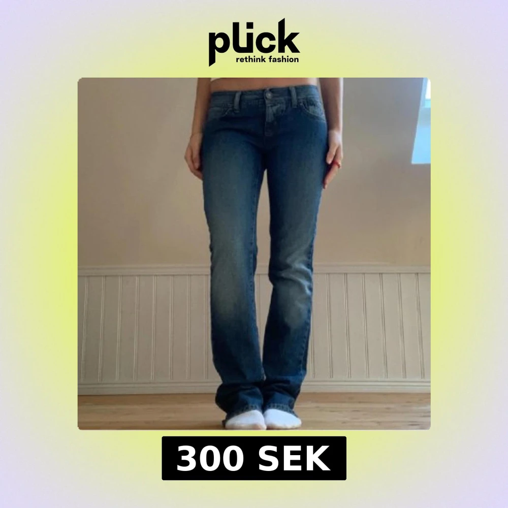 Snygga blå bootcut jeans från Seven7. De har en klassisk femficksdesign med subtila detaljer och en knappgylf. Lågmidjade! Första bilden är lånad från förra ägaren då byxorna tyvärr är för små för mig. Jag har använt jeansen 1 gång, inga defekter finns.