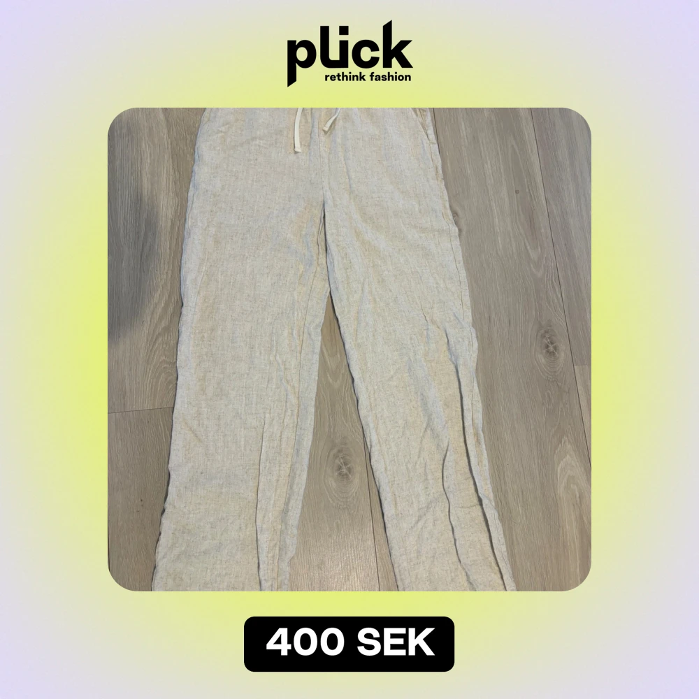Säljer ett par superbekväma beige linnebyxor . De har en avslappnad passform och snörning i midjan för justerbar komfort. Aldrig använda. Storlek L ( passar 164/170