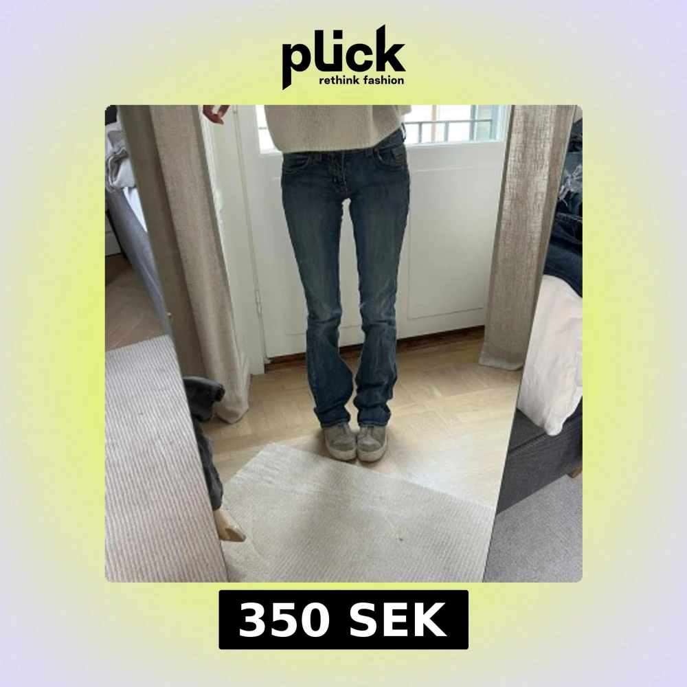 Säljer ett par klassiska blå bootcut jeans från Cowgirl Tuff Co. Jeansen har normal passform, snygga detaljer på bakfickorna och en något sliten look. Storlek 34 och väldigt långa i benen, i fint skick. Jag är 169 cm lång, och på bilderna är mitt innerbensmått ca 82,5 cm och midjemått (platt mätt på mig) ca 31 cm.