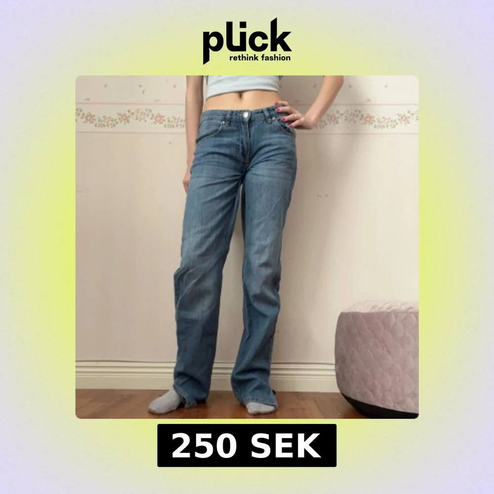 Lågmidjade jeans som jag sytt själv från högmidjade! Aldrig använda, mycket bra skick. Säljer de pga att de är för långa för mig som är 160cm. Innerbenslängd: ca 78. På tredje bilden kan man se att det har blivit ett litet veck, mellan benen, men det är inget som syns förutom när jag zoomat in. Jag klippte inte i tyget på fjärde bilden ifall någon ville sprätta upp trådarna eller ändra något💞
