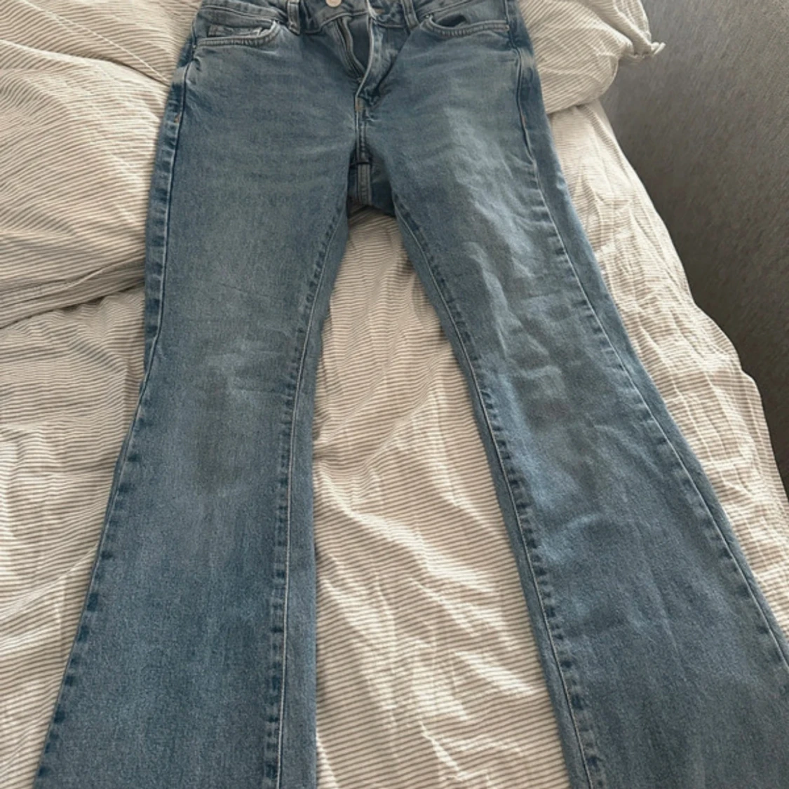 Säljer ett par ljusblå jeans från New Look, modell Brooke Petite. Jeansen har bootcut passform med lätt utsvängda ben och klassisk femficksdesign. Tillverkade i bomull med en snygg tvättad look. .