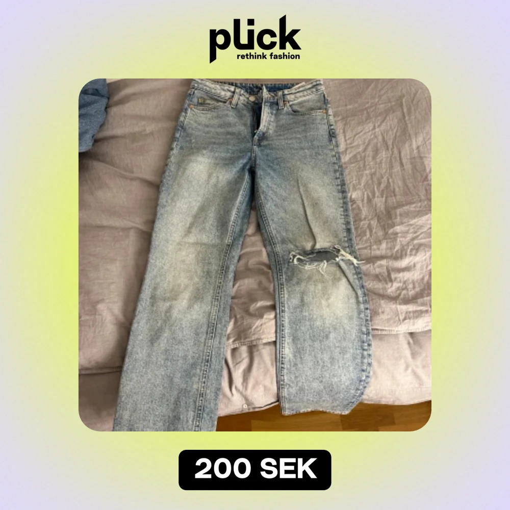 Blåa jeans som är använd ett par gånger men som är i väldigt god skick. Storleken är 34.