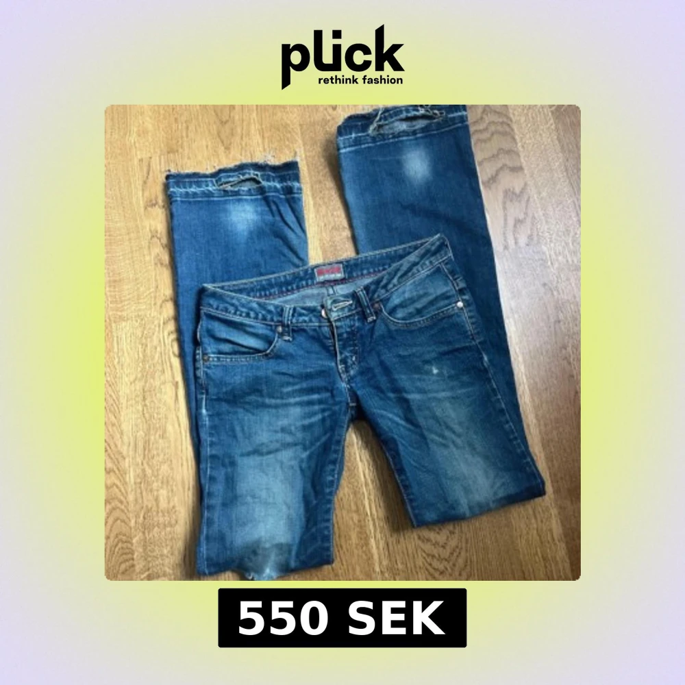 Säljer ett par blå lågmidjade jeans från Big Star med bootcut🫶🏽 Midjemått 35 och innebenslängd så dom passar mig som är 175