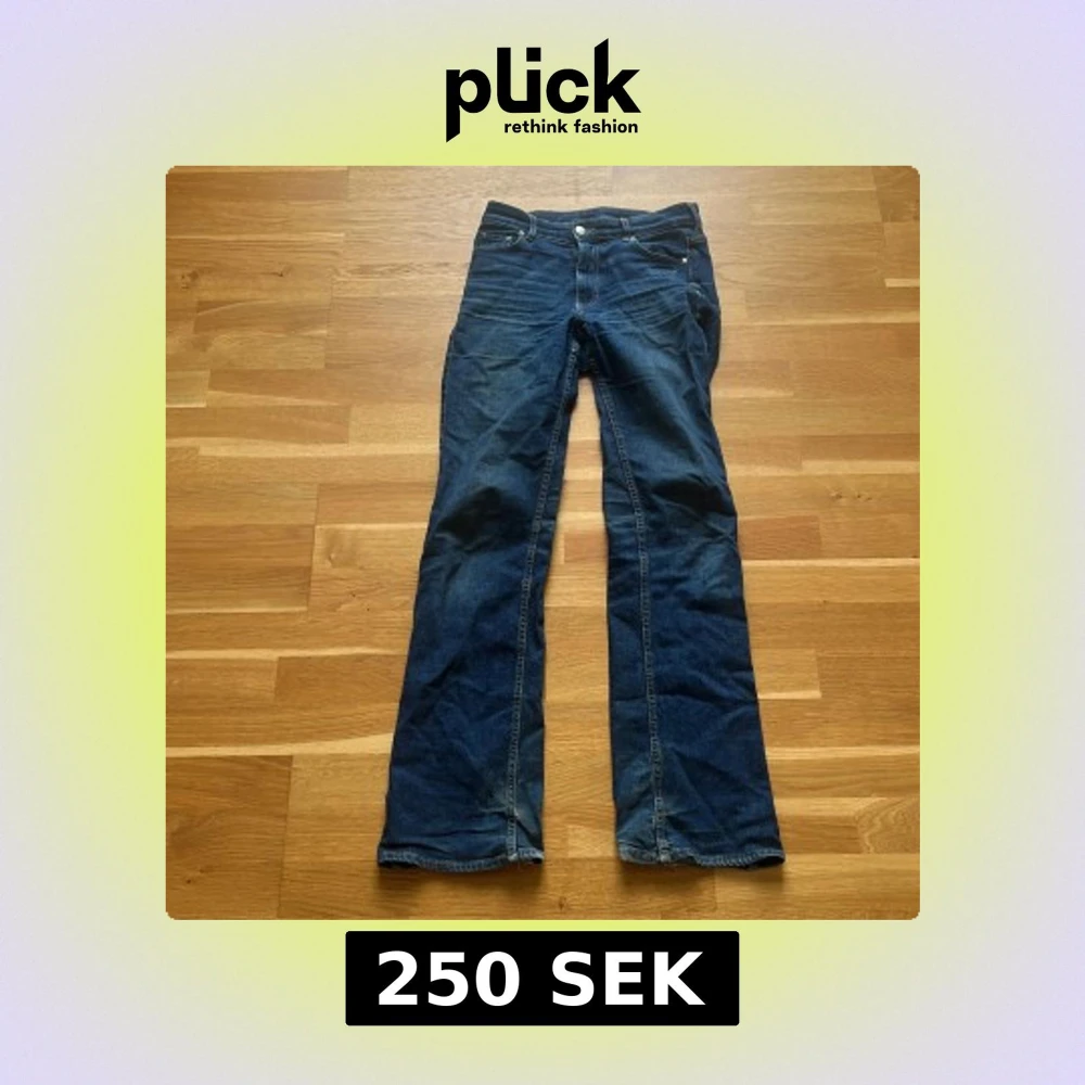 Mörkblå bootcut jeans från &Denim i high waist-modell. Klassisk femficksdesign, tillverkade i jeansmaterial. Snyggt utsvängda ben och cool tvätt som ger en avslappnad vibe.