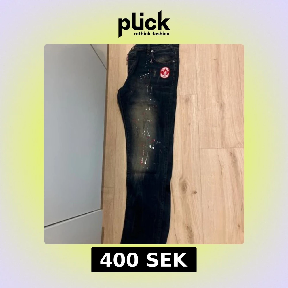 Mörkblå jeans från Dsquared2 med coola patchar och färgstänk i vitt och rött. Jeansen har en klassisk femficksmodell, slitna detaljer och raka ben. Snygga kontrastsömmar och unika detaljer gör dem till ett statement-plagg för dig som vill sticka ut. Ej orginal!