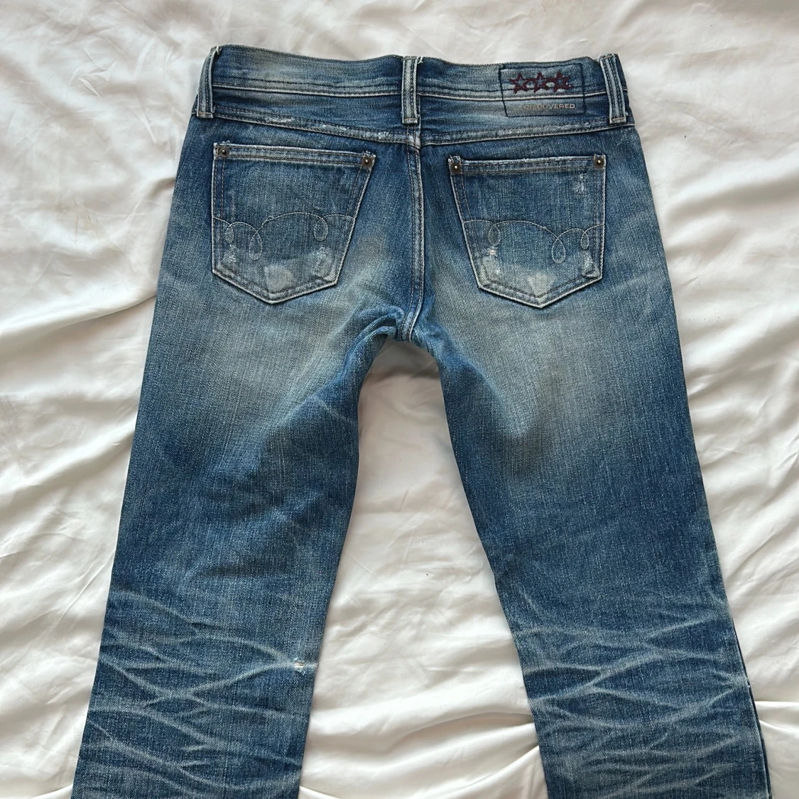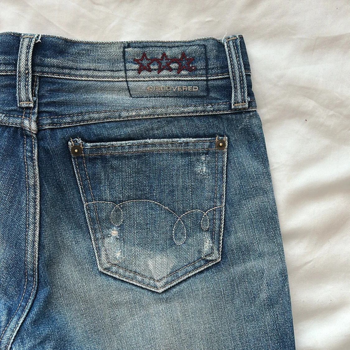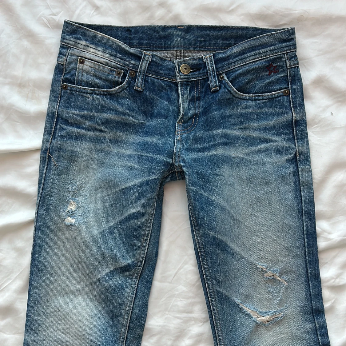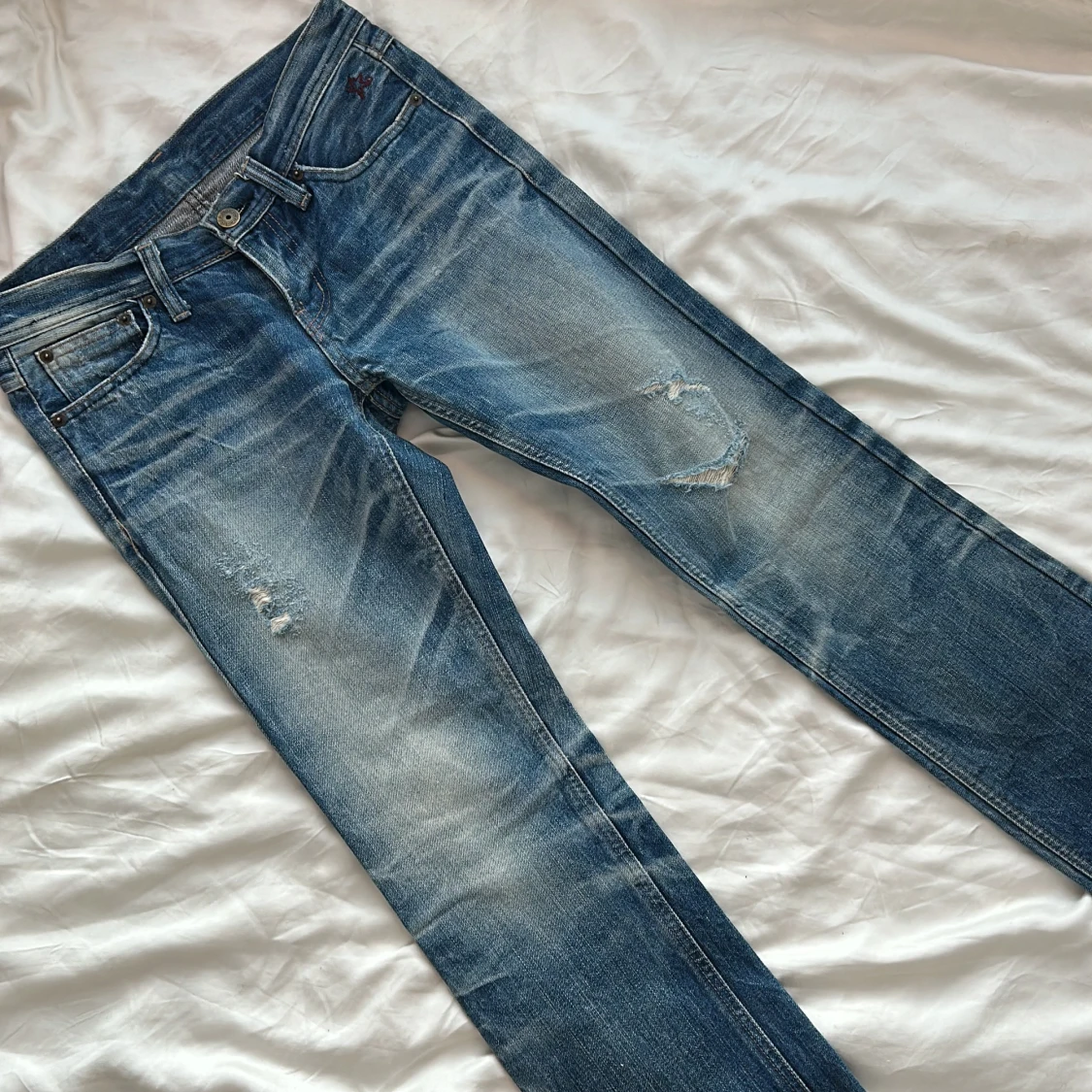 Snygga blå jeans med slitningar 😎 taggen säger W26, innerbenslängd 75cm, midjemått ca 72cm💝💝Har inga bilder på för de tyvärr är för små för mig