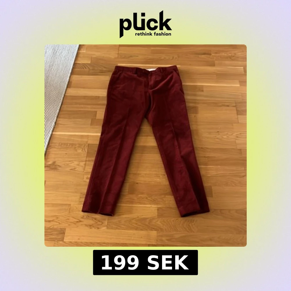 Snygga vinröda kostymbyxor med en elegant passform. Perfekta för en stilren look. Byxorna har en klassisk design med knappar och dragkedja framtill.