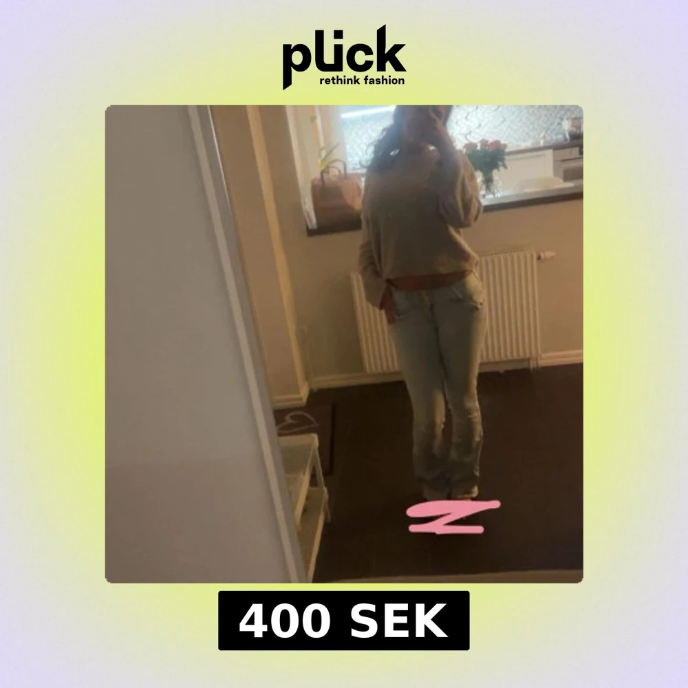 Säljer ett par ljusblå jeans med bootcut passform och klassisk femficksdesign. Jeansen har låg midja och är tillverkade i mjukt denimtyg som sitter snyggt och bekvämt. Perfekta för dig som gillar en retro vibe och vill ha ett par jeans som sticker ut. Har däremot flera små hål och ett av banden är borta.