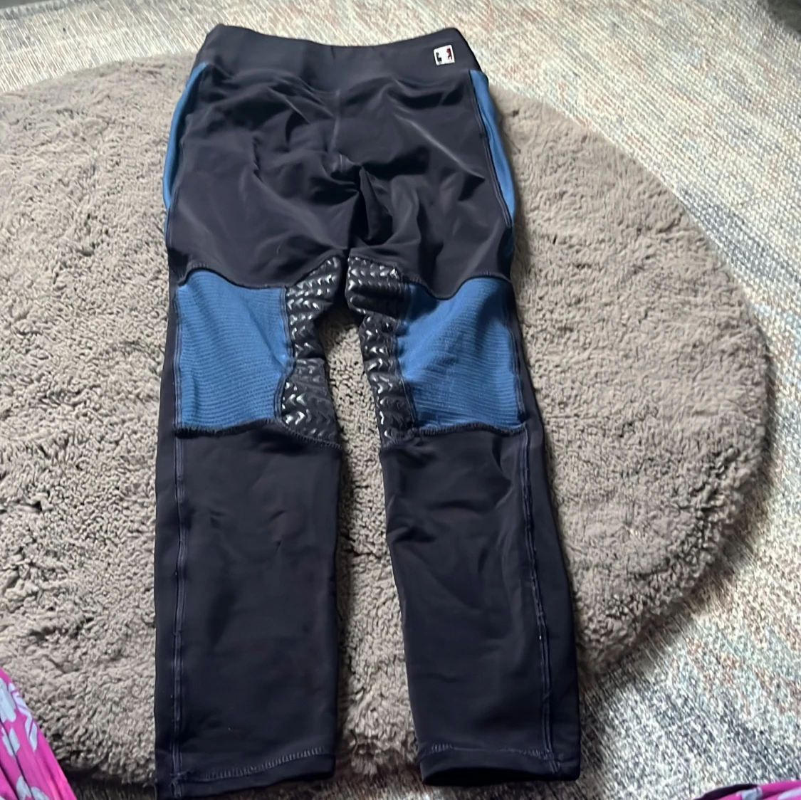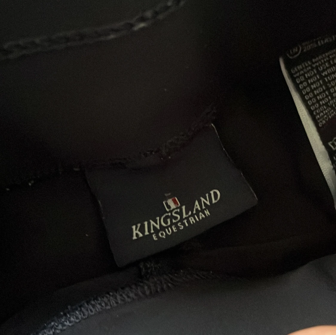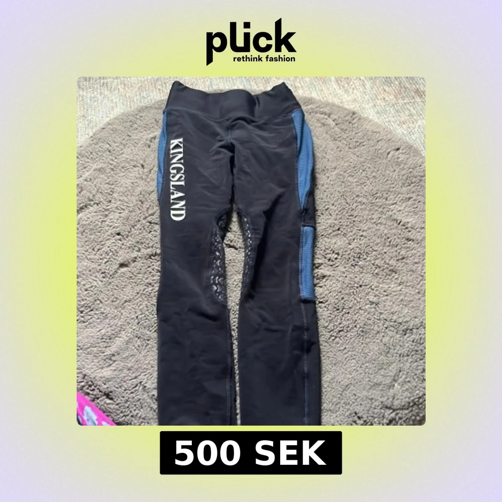 Snygga svarta ridleggings från Kingsland med blå detaljer längs sidorna och silikongrepp på insidan av benen. Modellen har hög midja och elastiskt material som ger bra passform och rörelsefrihet. Perfekta för dig som gillar ridning och vill ha stil på stallet. Storleken står inte men funkar för nästan alla. själv har jag 158 i storlek och xs men är lite stor för mig men syns knappt💕 använt en gång