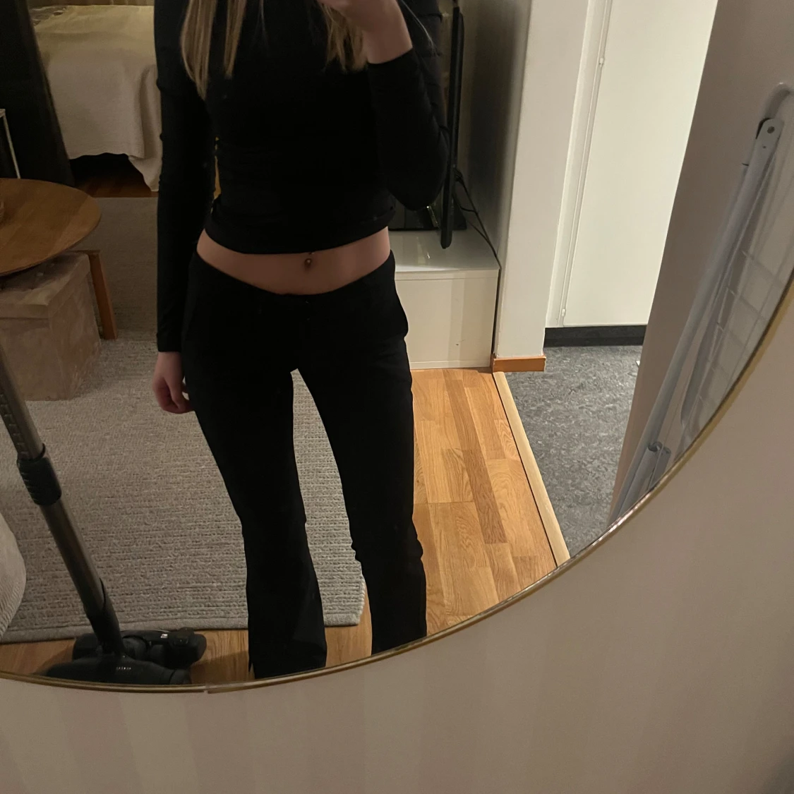 Snygga svarta kostymbyxor i modellen ”Vera”. Perfekta för både vardag och fest. De har en klassisk och stilren design som passar till allt. Byxorna är i ett bekvämt material som ger en skön passform. Dessa är köpta för originalpris och säljer för 400kr pga ingen användning av de (strl 34).