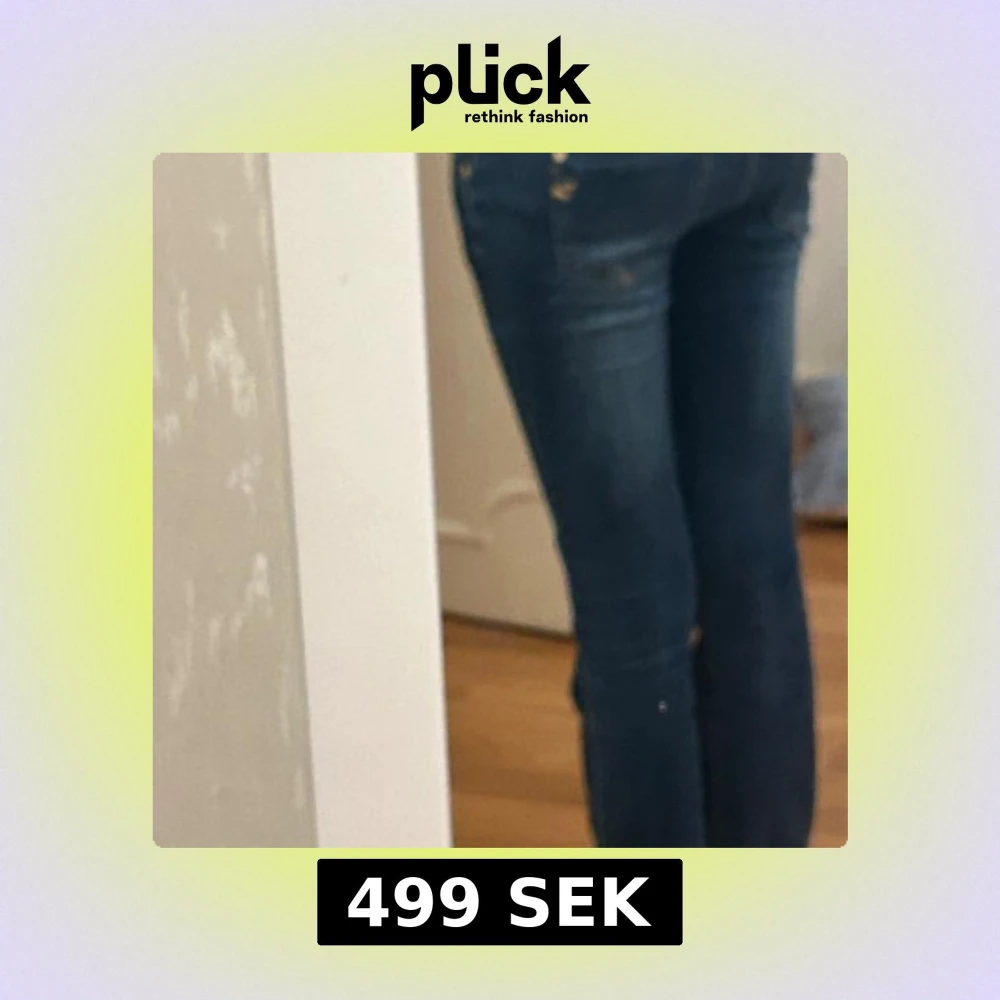 Snygga blå jeans med bootcut-modell och låg midja. Jeansen har klassiska fickor och gylf med knappar. Materialet är jeans med lätt stretch och tvättade detaljer för en cool look. Aldrig andvända därav priset❤️