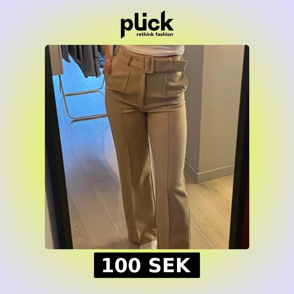 Snygga beiga kostymbyxor från Ivyrevel med hög midja och tillhörande bälte. Byxorna har raka ben, pressveck och en stilren look som passar perfekt till många olika outfits.