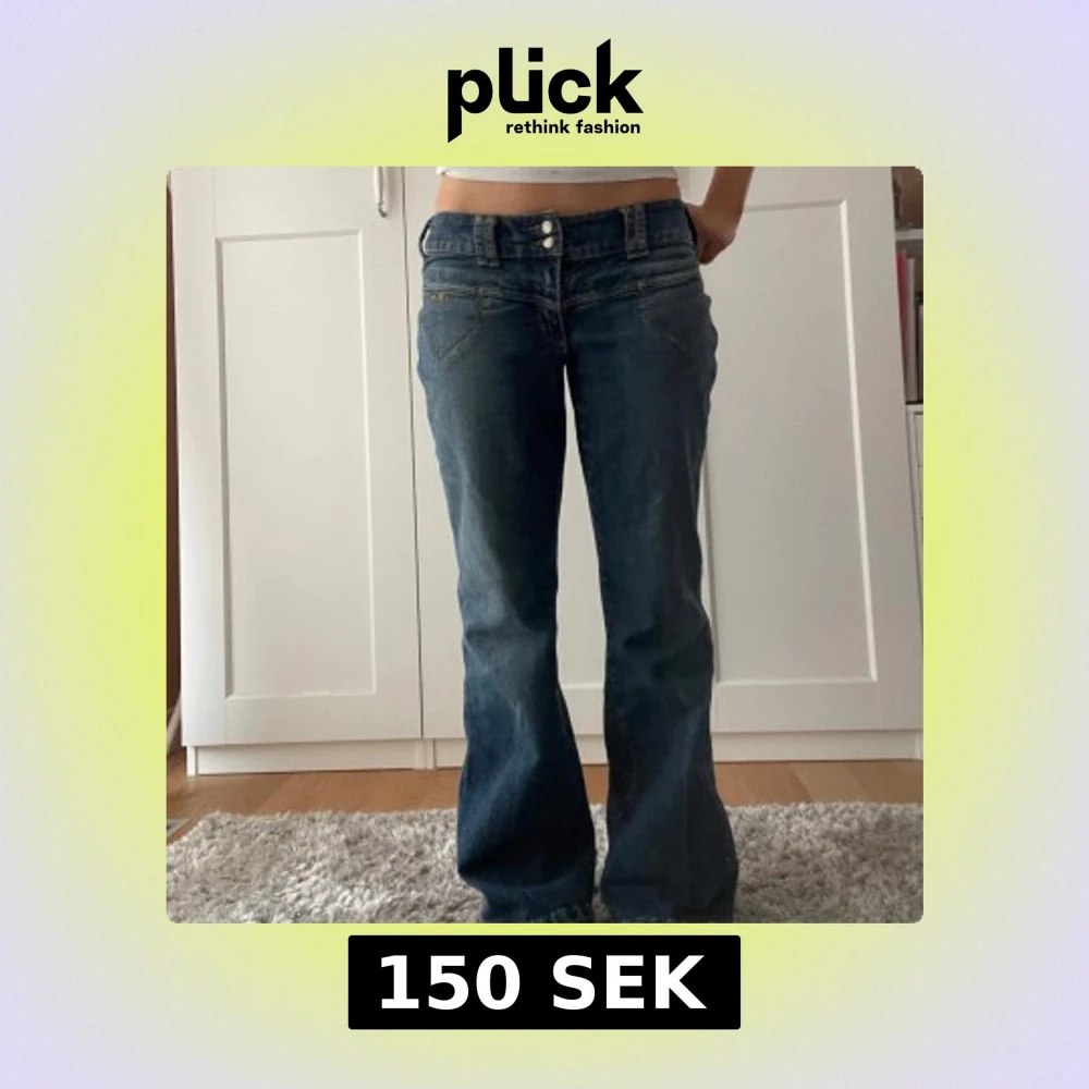 Snygga blå bootcut jeans med låg midja💓skriv privat ifall ni vill ha mått!