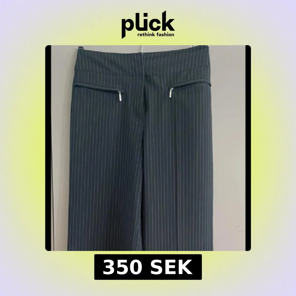 Snygga svarta kostymbyxor med smala vita ränder och två dragkedjor framtill. Byxorna har hög midja och vida ben för en trendig look. Perfekta till en cool oversized skjorta eller stickad tröja. Materialet känns mjukt och följsamt.