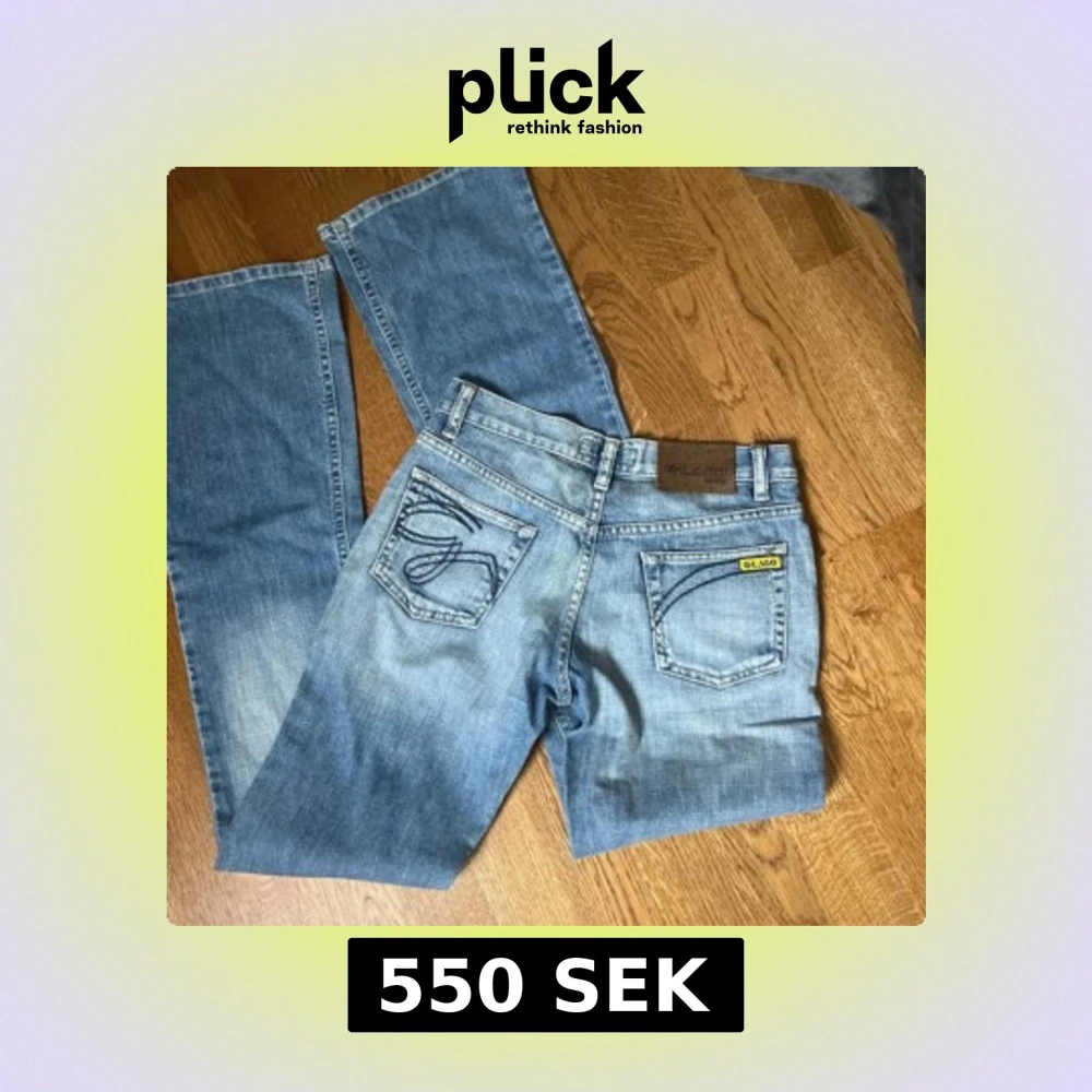 Snygga lågmidjade ljusblå jeans från Glago med bootcut. Midjemått 35 och innebenslängd så dom passar mig som är 175💗