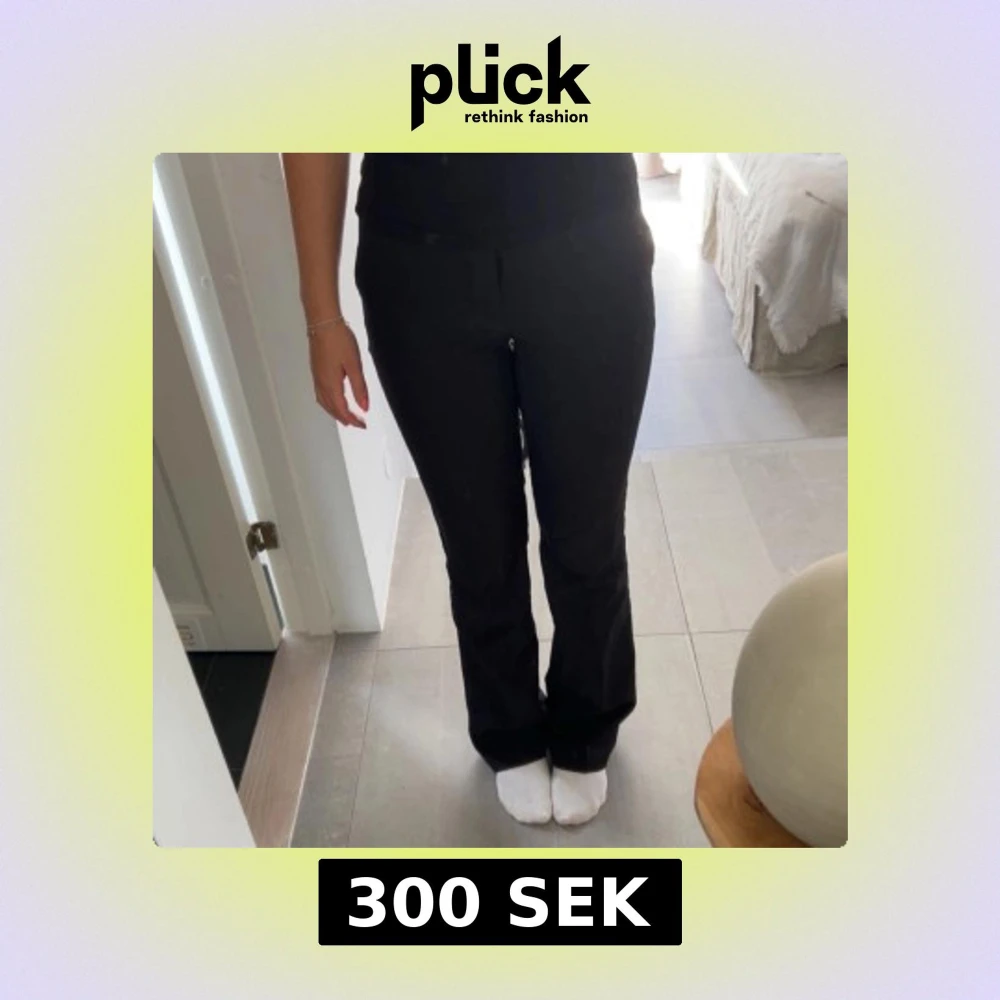 Snygga svarta kostymbyxor med bootcut-snitt från bikbok st 34, säljer pågrund av att de tyvärr blivit lite små💕 använd fåtal gånger, bara att fråga om ni vill ha mer bilder eller har någon fråga🥰