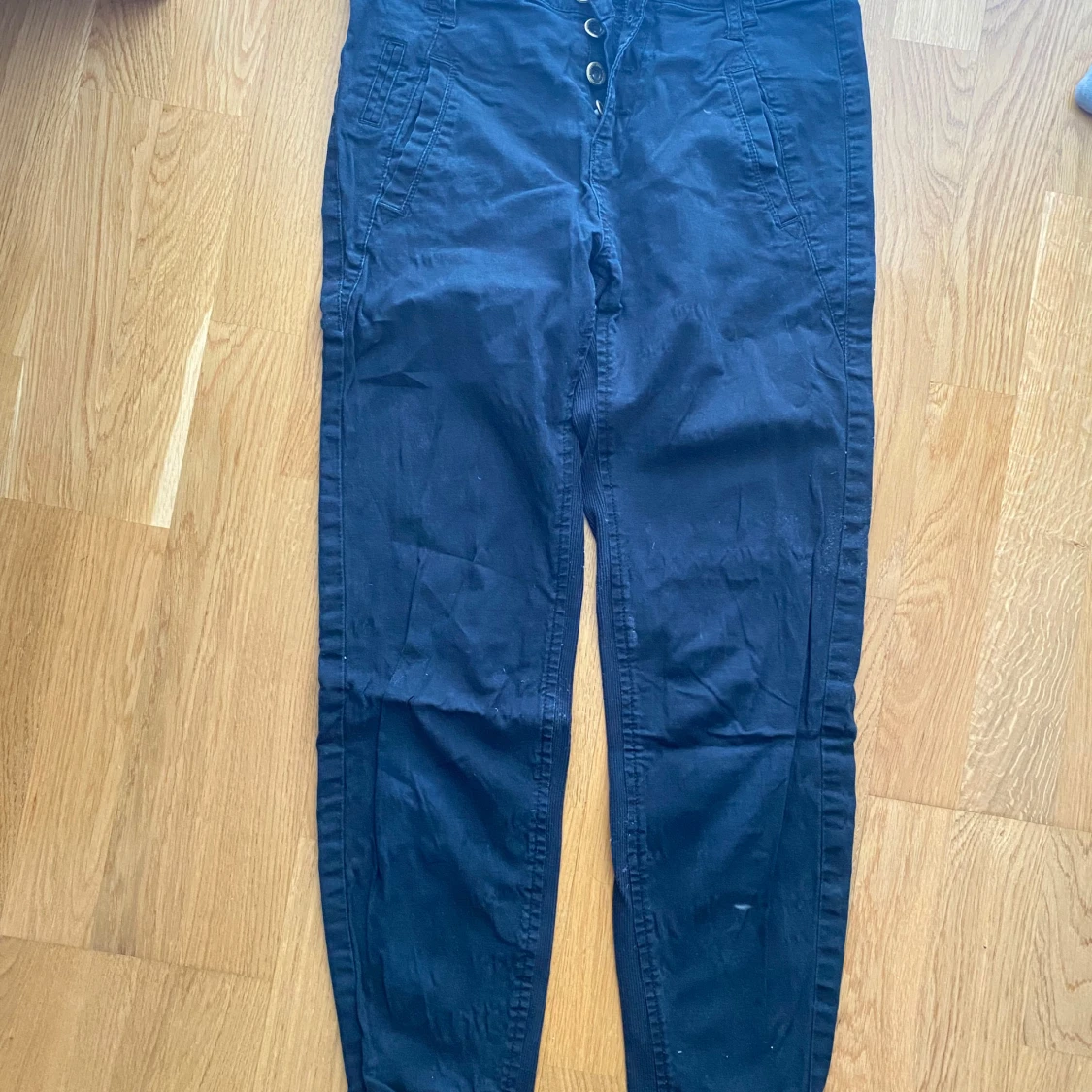 Snygga mörkblå chinos med raka ben och klassiska fickor både fram och bak. Byxorna har bälteshällor och stängs med knappar framtill. Perfekta för en clean och stilren look, passar till både skjorta och t-shirt.
