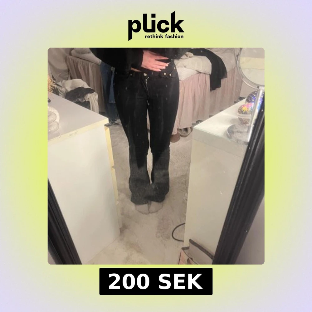 Säljer ett par svarta bootcut jeans från Gina i storlek 34. Mid-waist, lite slitningar längst ner men inget man tänker på!