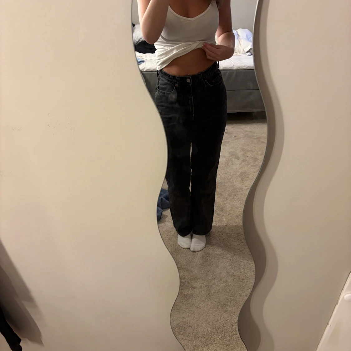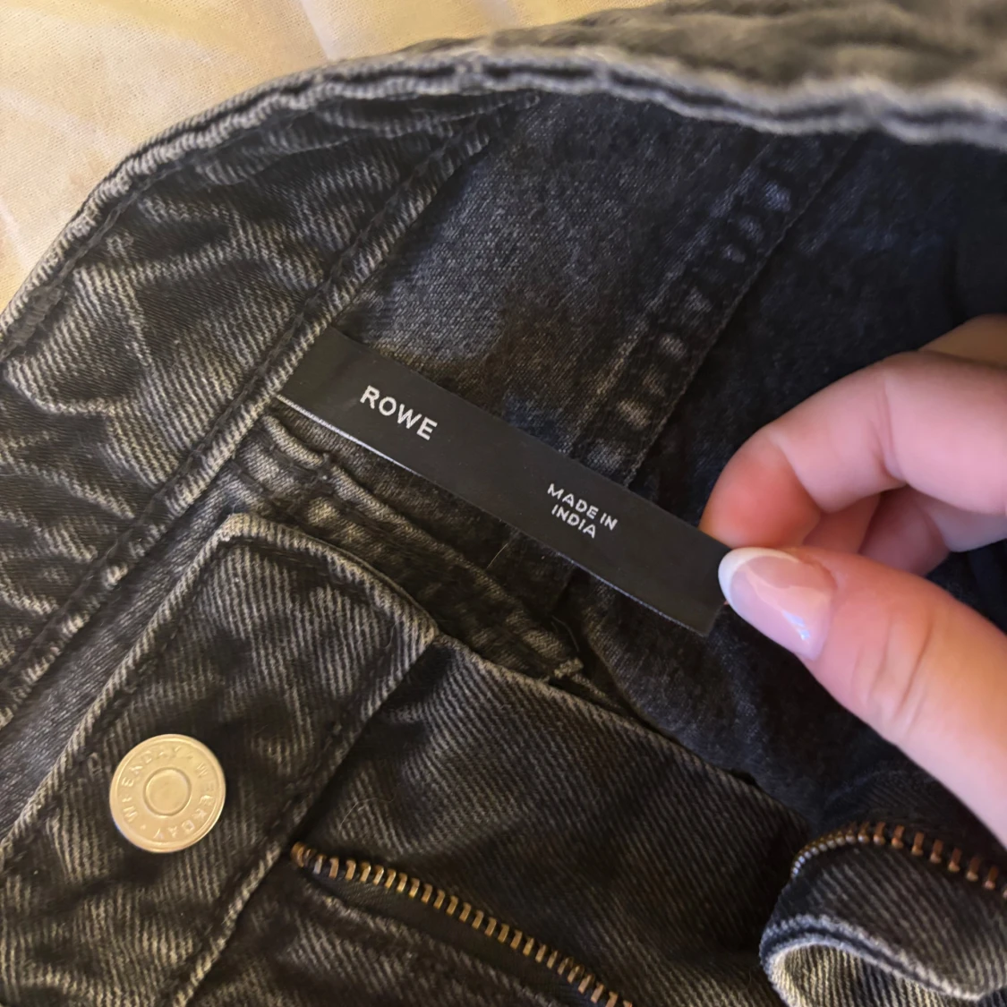 Säljer ett par svarta jeans från Rowe med rak passform och hög midja. Jeansen har klassisk femficksdesign, dragkedja och knapp framtill. Materialet är jeans och färgen är tvättad svart, vilket ger en cool och avslappnad vibe.