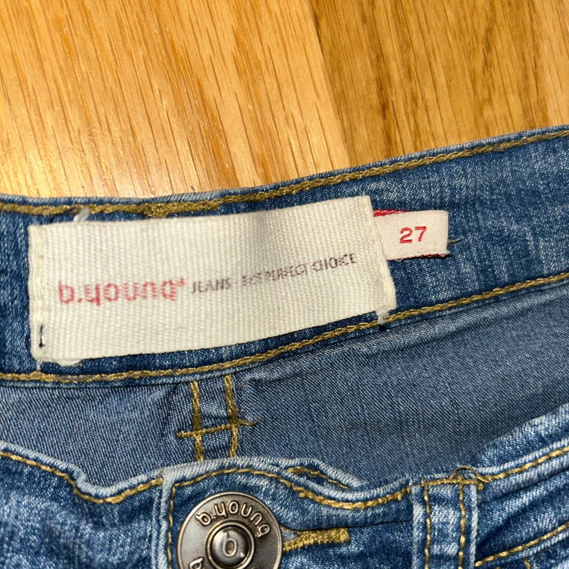 bootcut jeans från b.young, köpta secondhand men bara använd några fåtal gånger, det står 27 på dem men jag skulle säga att de är storlek 34, köparen står för frakten!! skriv för fler bilderrr