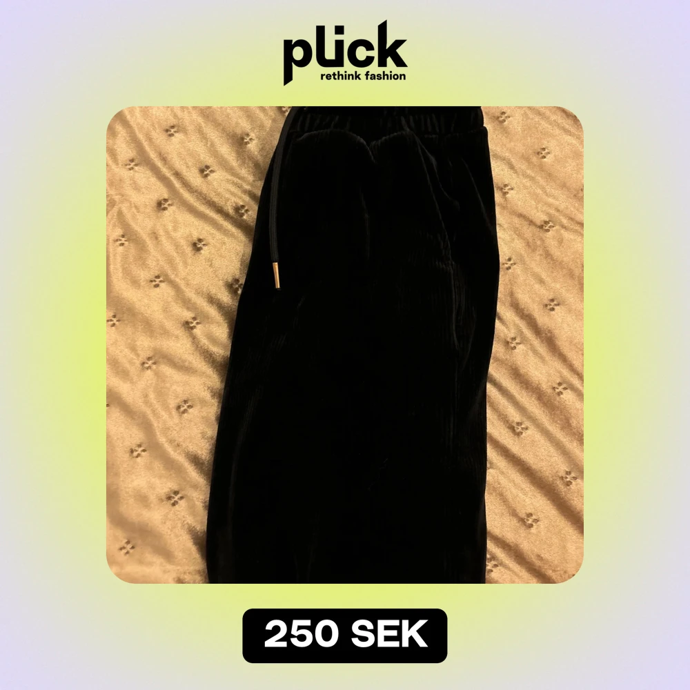Säljer ett par svarta manchesterbyxor i mycket bra skick. De har en bekväm loose passform och är perfekta för höst och vinter. Byxorna har en elastisk midja med snörning för extra komfort. Perfekta för en avslappnad stil!