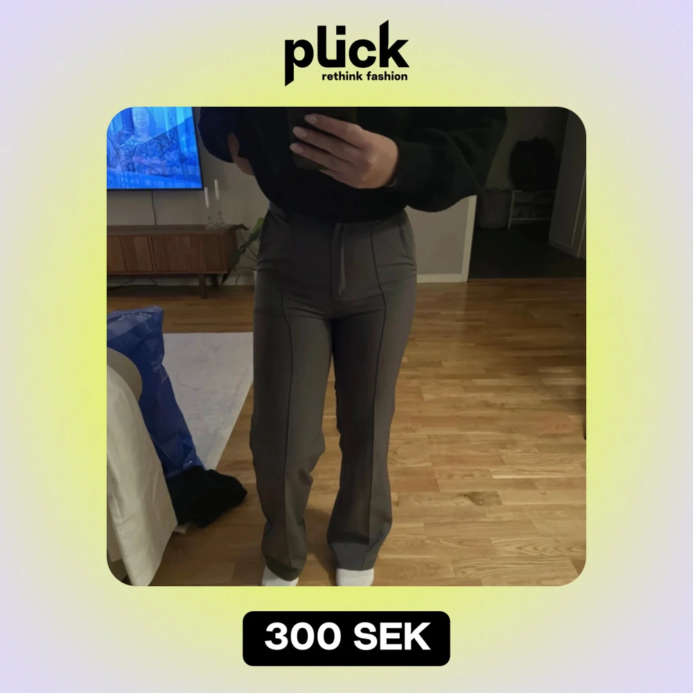 Säljer ett par snygga grå byxor i mycket bra skick. De har en tight passform och är högmidjade, vilket ger en smickrande siluett. Perfekta för både vardag och fest!