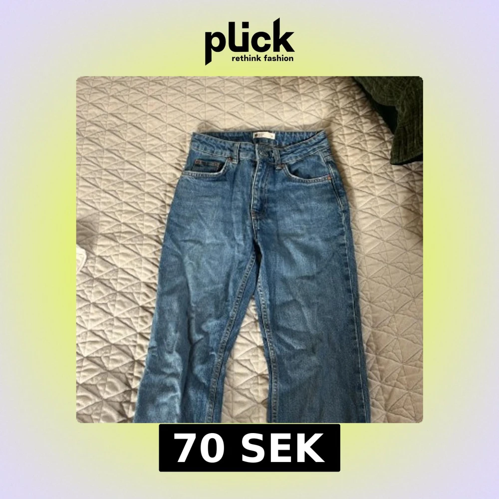Säljer ett par klassiska blå jeans från Perfect Jeans. De har en rak passform och är tillverkade i denim. Perfekta för en avslappnad stil.