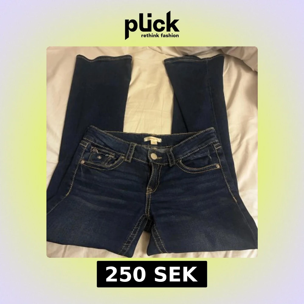 säljer dessa blå lågmidjade jeans med fina sömmar storlek 32-34