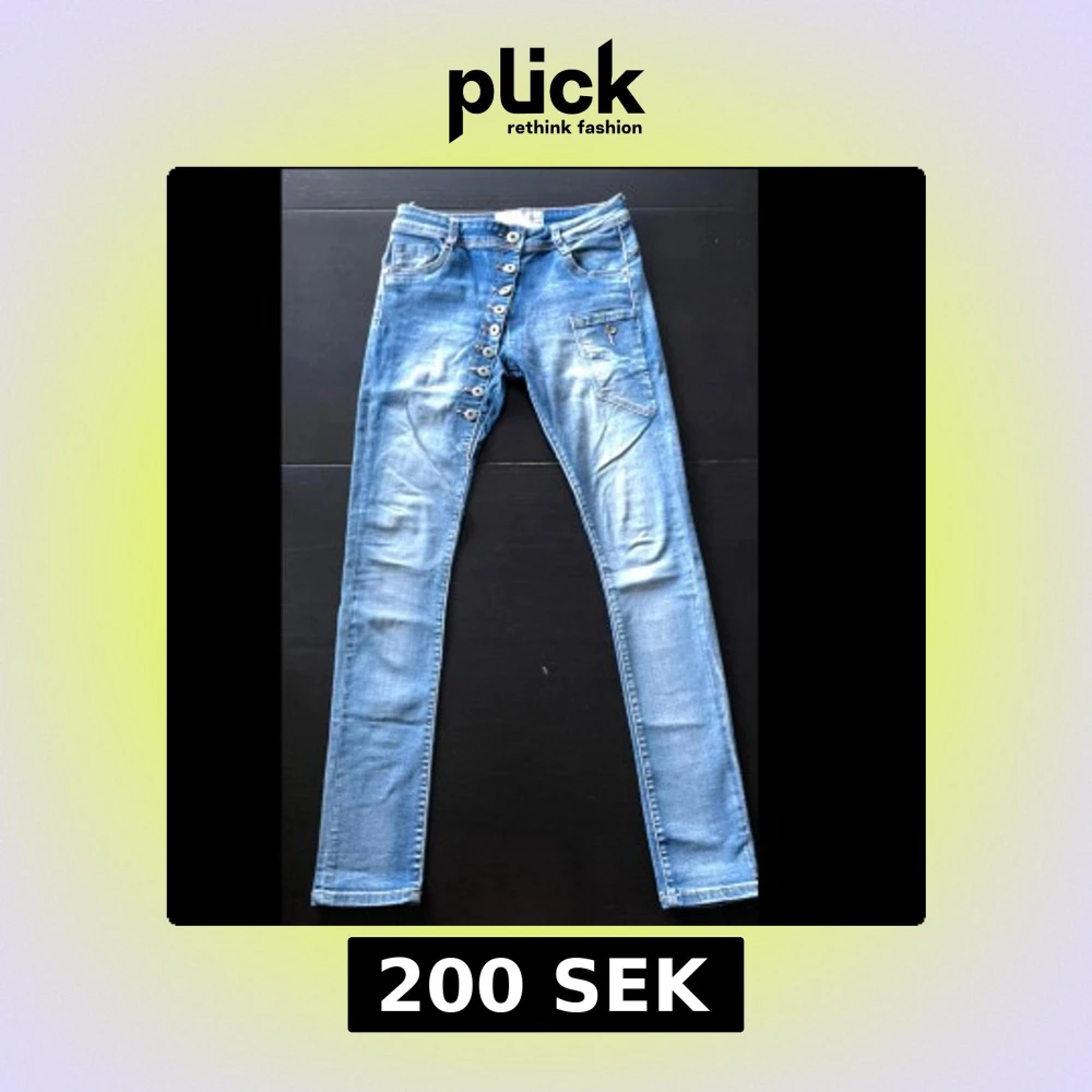 Snygga ljusblå skinny jeans från Chica London med flera knappar framtill och coola detaljer på fickorna. Jeansen har klassisk femficksdesign och är tillverkade i stretchigt denim för en tight passform. Perfekta för dig som gillar en trendig och bekväm stil.