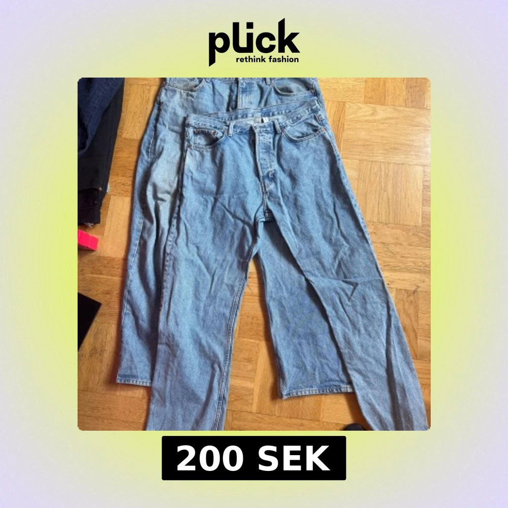 Två par klassiska blå jeans med rak passform och femficksdesign. De har hög midja och är tillverkade i robust denim. Perfekta för en avslappnad och tidlös look.