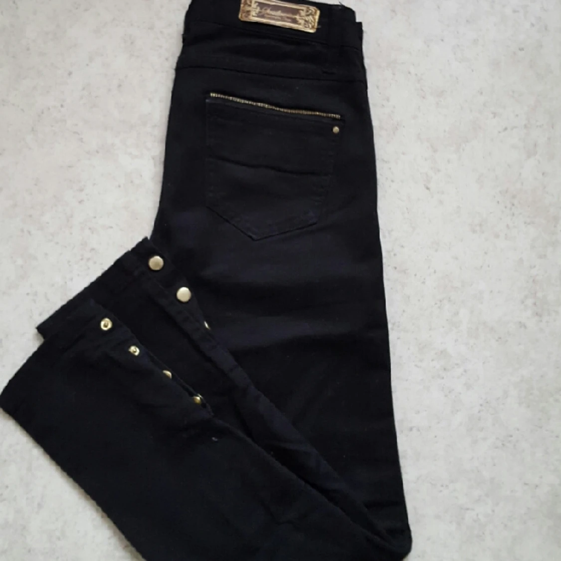 Jätte snygga tjejiga svarta byxor i strl 34 jeans material använda fåtal gånger bra skick/inget öppet köp.frakten ca 56 kr. om frakten klarar sig på mindre än det står då swishar jag tillbaka resten.