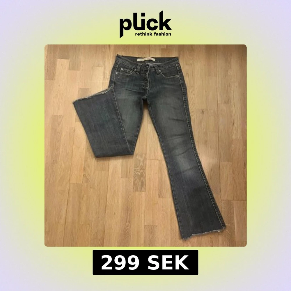 bootcut jeans från trf denim med tydliga sömmar. Gylfen är trasig men funkar att använda säkerhetsnål (sänker priset pga det) säljer för att den inte passar längre. Köpta second-hand men bara använt en gång