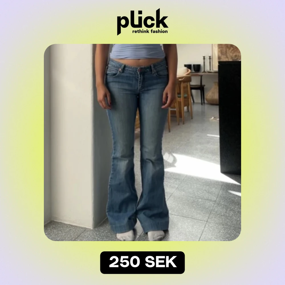 Så fina bootcut jeans från märket att. Jag brukar ha stl 36/38 och dessa sitter som en smäck! Blåare i verkligheten.inte kommit till mkt användning då de är för långa på mig. Jag är 163 cm lång. Har lite slitningar längs ner på bakre delen av benen!