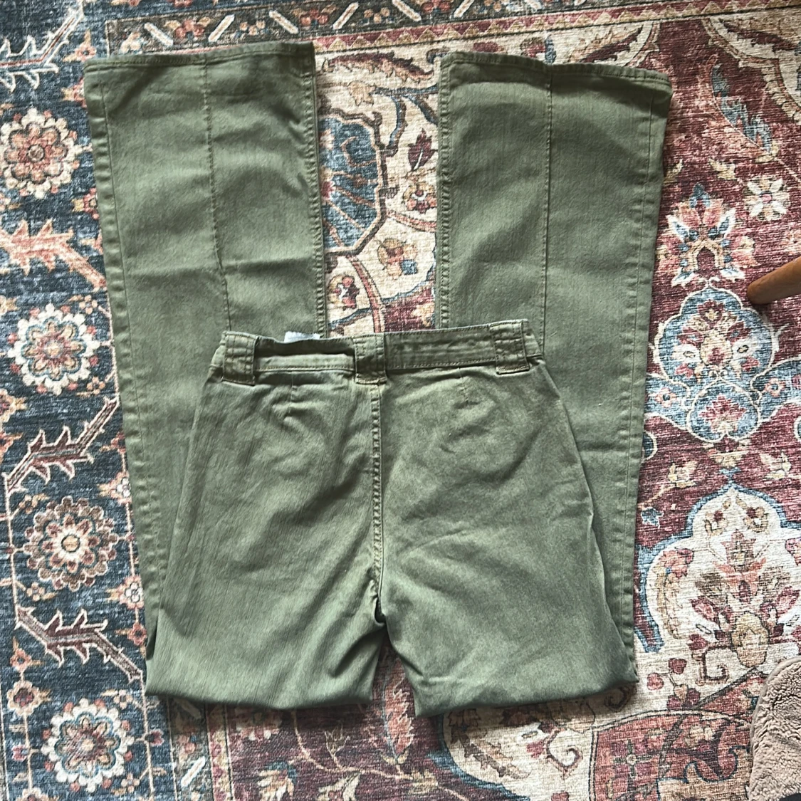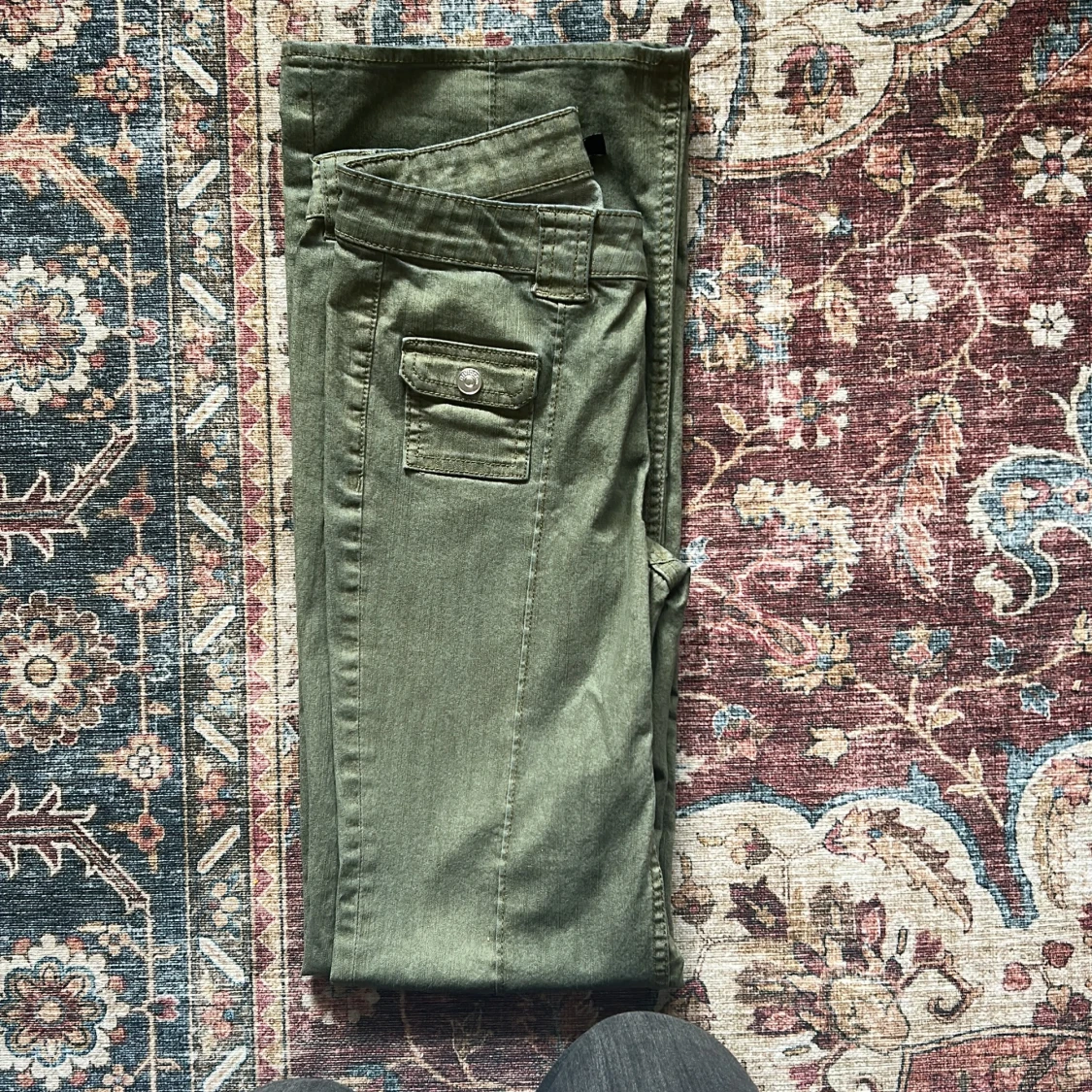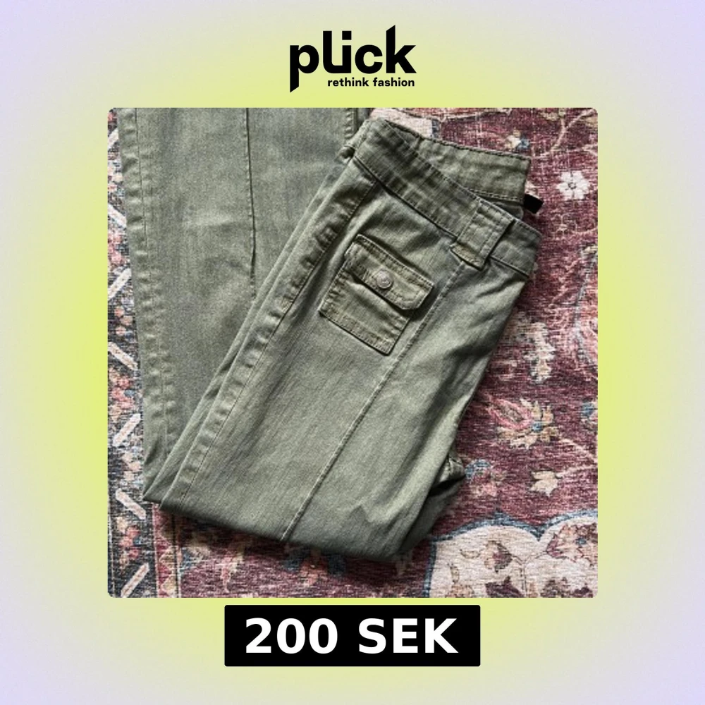 Snygga olivgröna cargopants från DIVIDED med bootcut model och praktisk ficka med knapp på sidan. Perfekta för en chill och avslappnad stil.