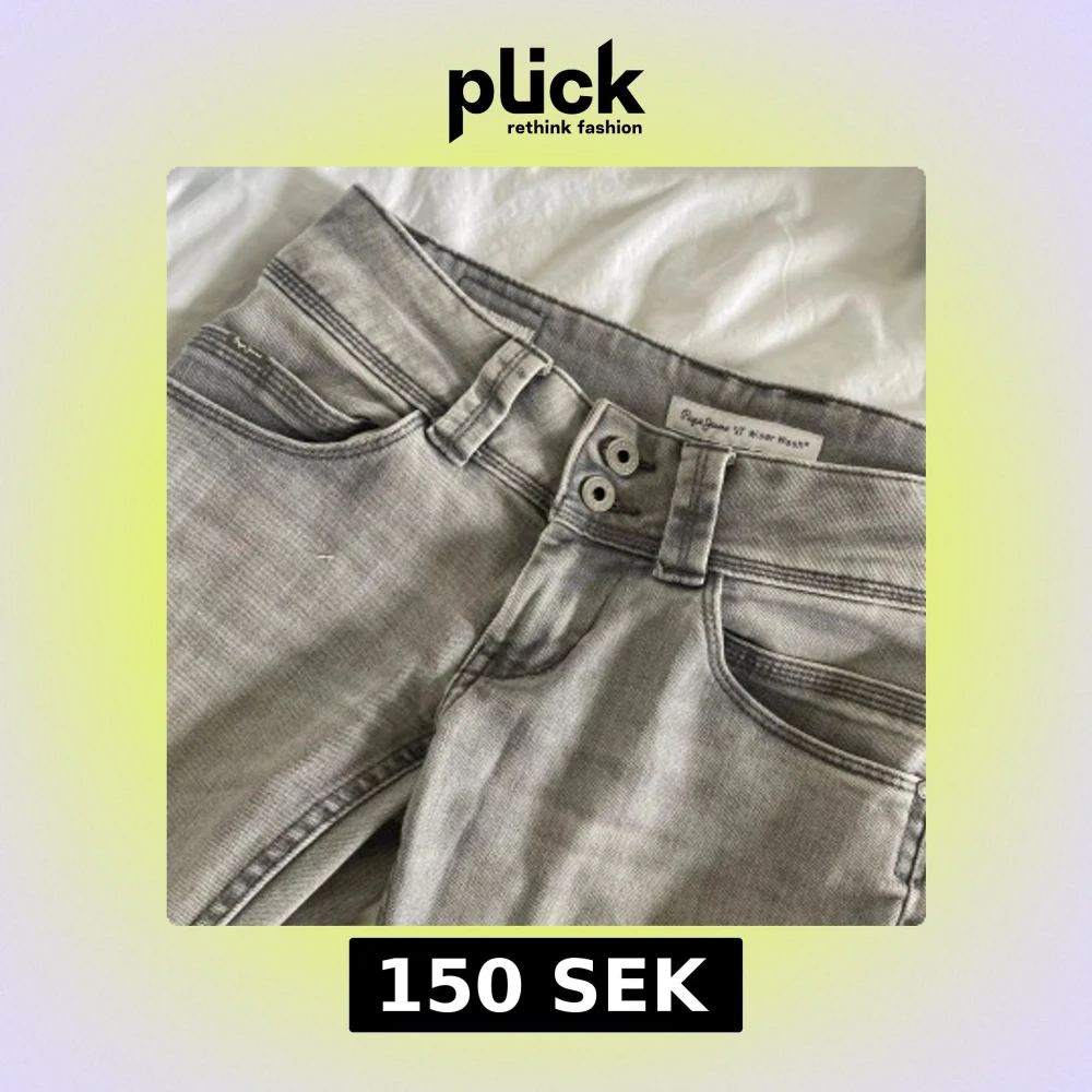 Säljer ett par gråa jeans från Pepe jeans i modellen Venus. Byxorna har rak passform, låg midja och dubbla knappar framtill. Storlek 36