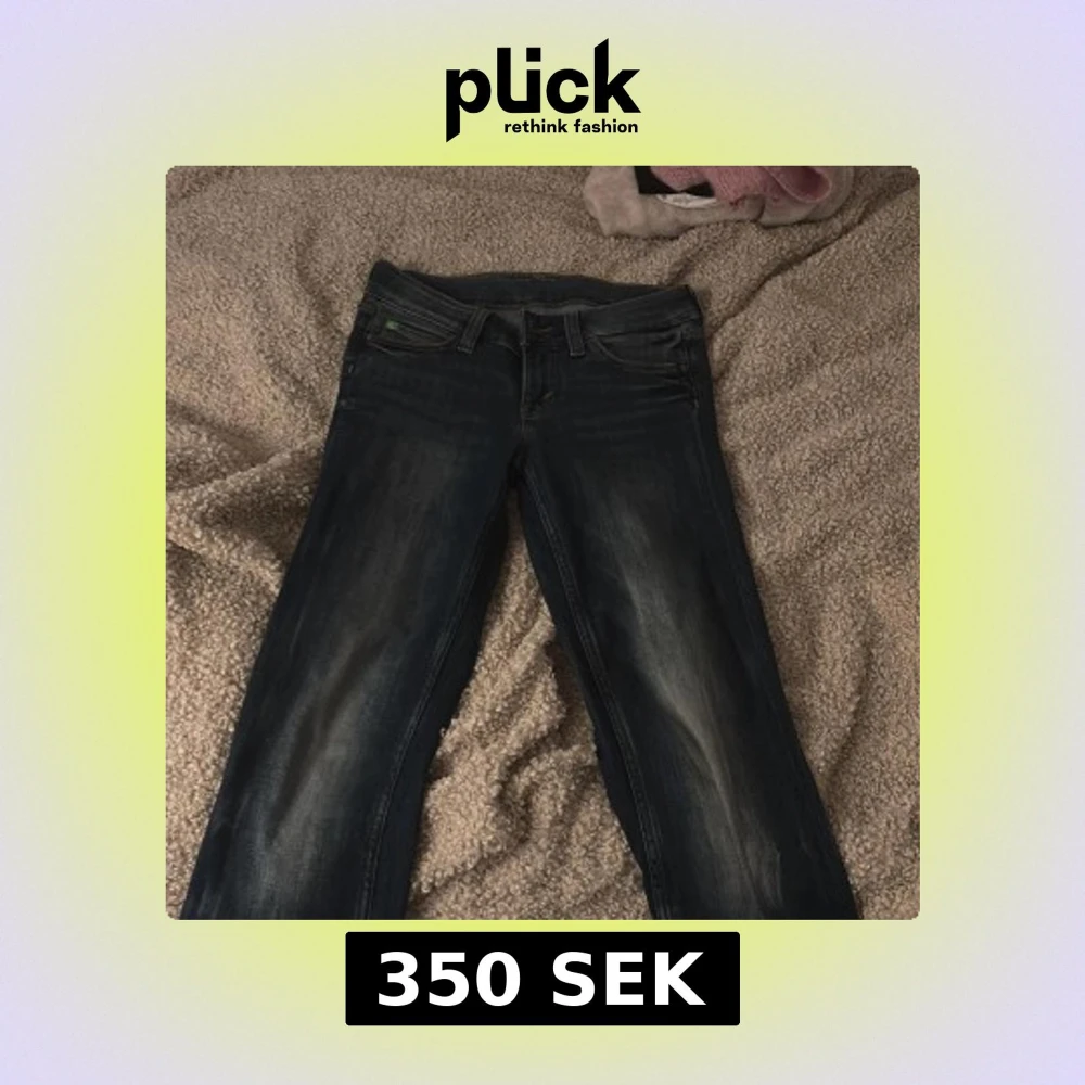 Snygga mörkblå jeans från Cheap Monday med bootcut passform och låg midja. Jeansen har slitningar framtill och ett grönt Cheap Monday-märke på bakfickan. Klassisk femficksmodell i stretchig denim som sitter tajt upptill och släpper ut vid benslutet.