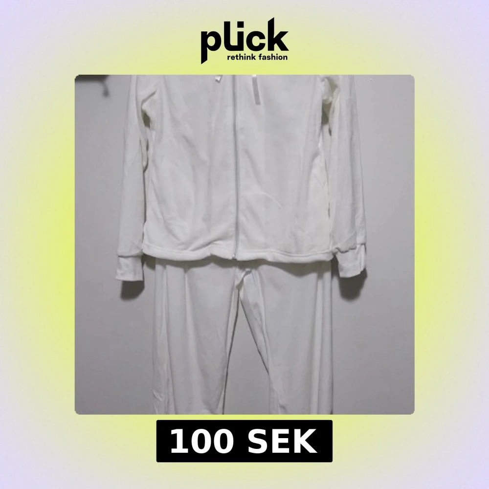 Säljer ett set med vita mjukisbyxor och matchande hoodie från Colors by Venca. Setet har en dragkedja framtill och snörning i midjan för justerbar passform. Perfekt för en avslappnad stil.