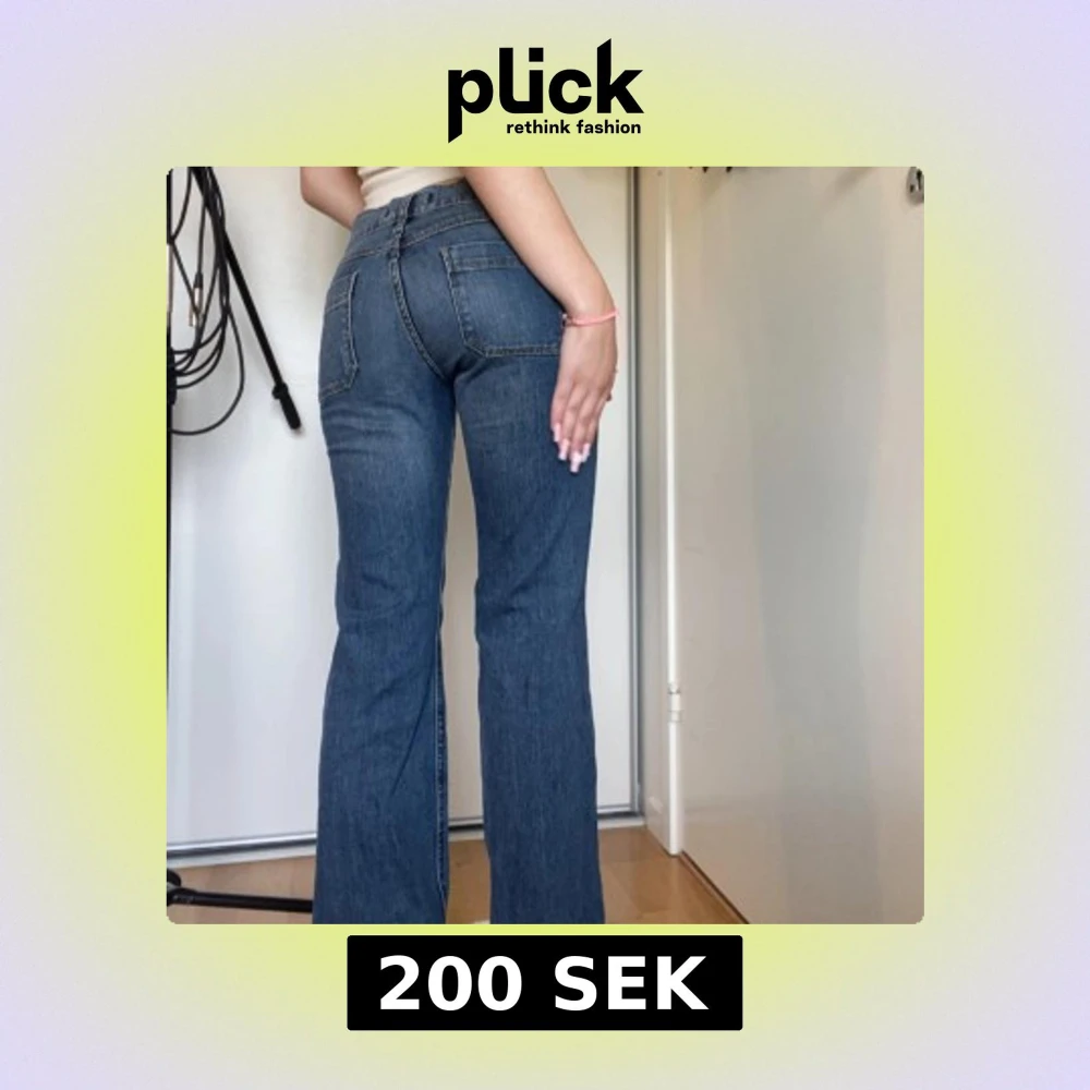 Snygga blå jeans med bootcut och låg midja. Klassisk fyrficksmodell med markerade sömmar och raka ben som blir vidare nedtill. Perfekta för en avslappnad och trendig look.